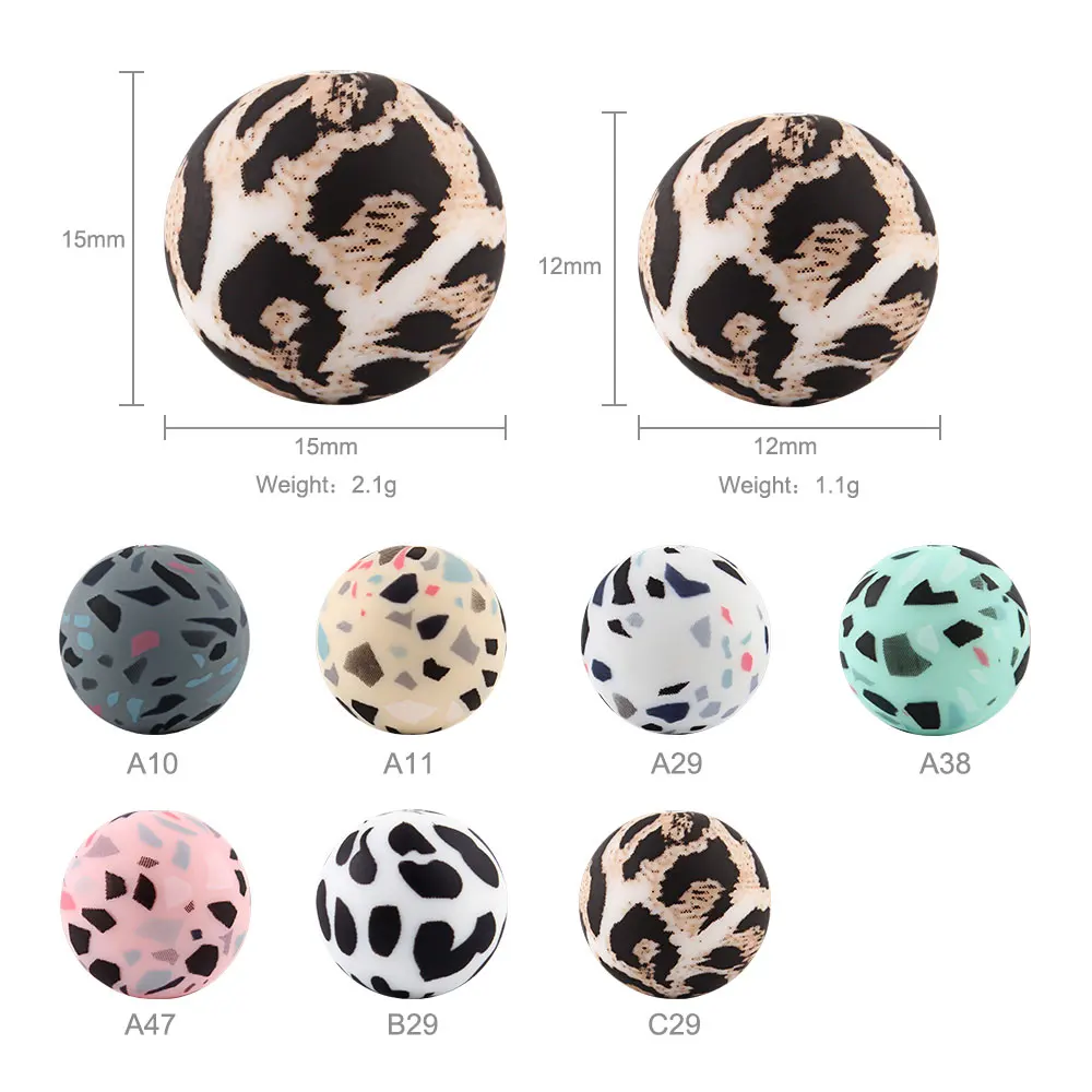 10 шт., силиконовые бусины с леопардовым принтом, 12 мм, 15 мм, 14 мм