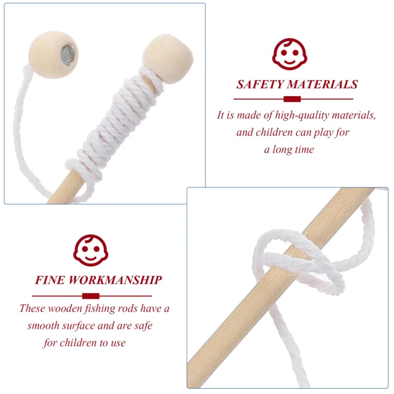Рыбалка шест игрушка-это веселая и обучающая игрушка для мальчиков и девочек, которая помогает развить их практические навыки и проявить терпение. Их легко использовать с разумным размером и весом, чтобы облегчить детям захват и использование, а также дать больше удовольствия их жизни. Особенности Удочка -Цвет: бежевый. -Материал: дерево. -Размер: длина 20 см/7,87 дюйма. Интересная Удочка светильник Кая и портативная, ее легко носить с собой, с ней можно играть в любое время и в любом месте. Упаковочный лист4 * удочка