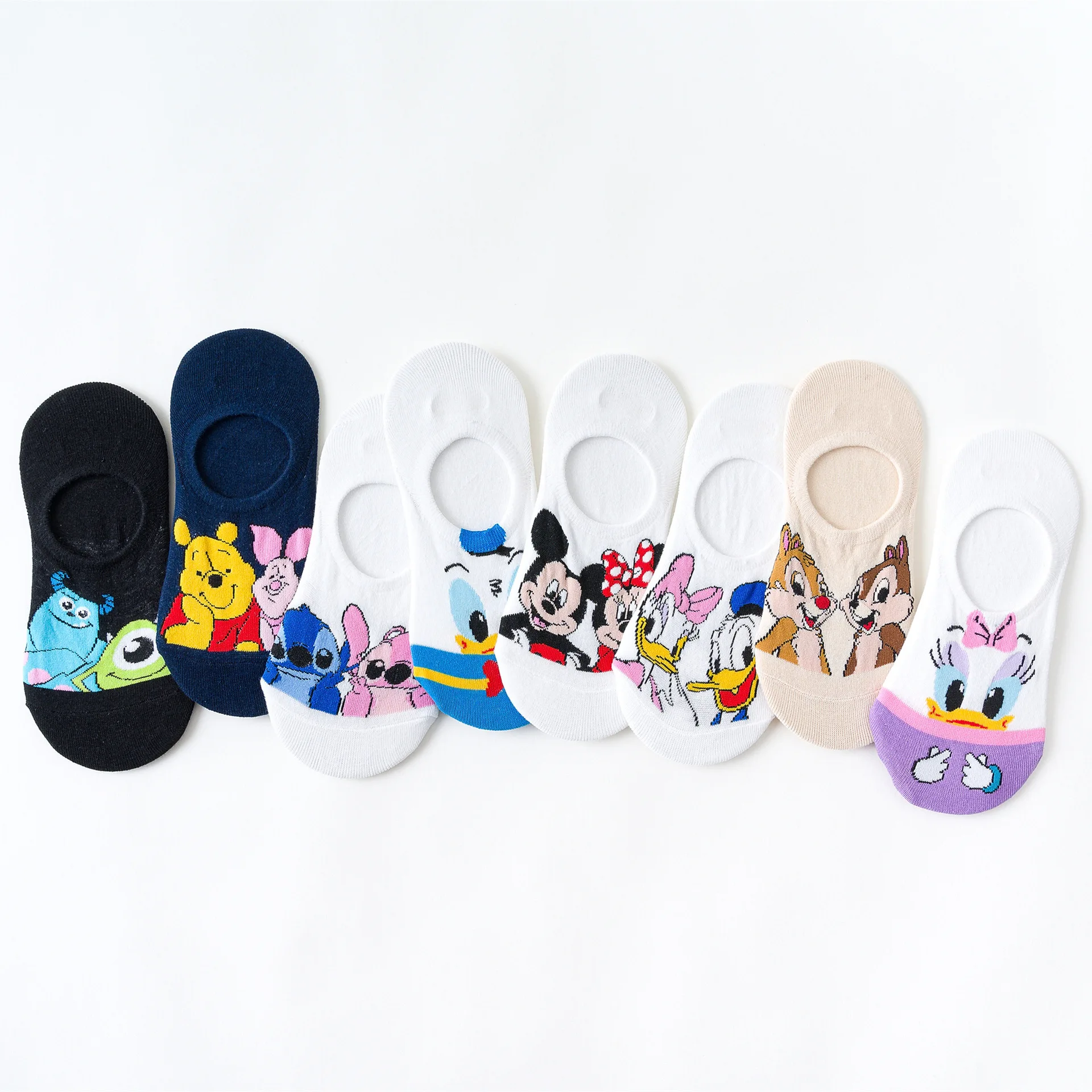 Женские носки Disney, носки с мультяшными животными, мышками, милые забавные носки до щиколотки, невидимые силиконовые носки, хлопковые носки-лодочки для девочек
