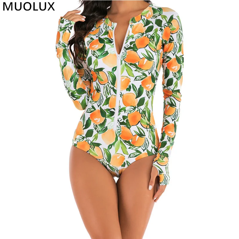 Номер моделиBodysuit Long Sleeve Rash Guard Women Print Swimwear Zipper One Piece