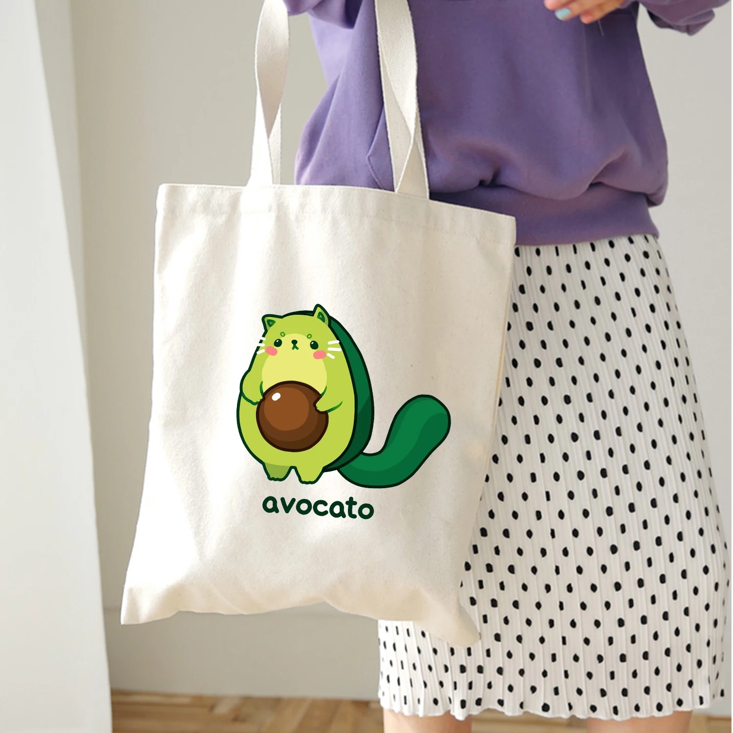 Новинка 2020, милая многоразовая сумка для покупок с принтом авокадо, женские холщовые сумки-тоуты, сумки-шопперы с мультяшным принтом, сумки через плечо, эко-сумка
