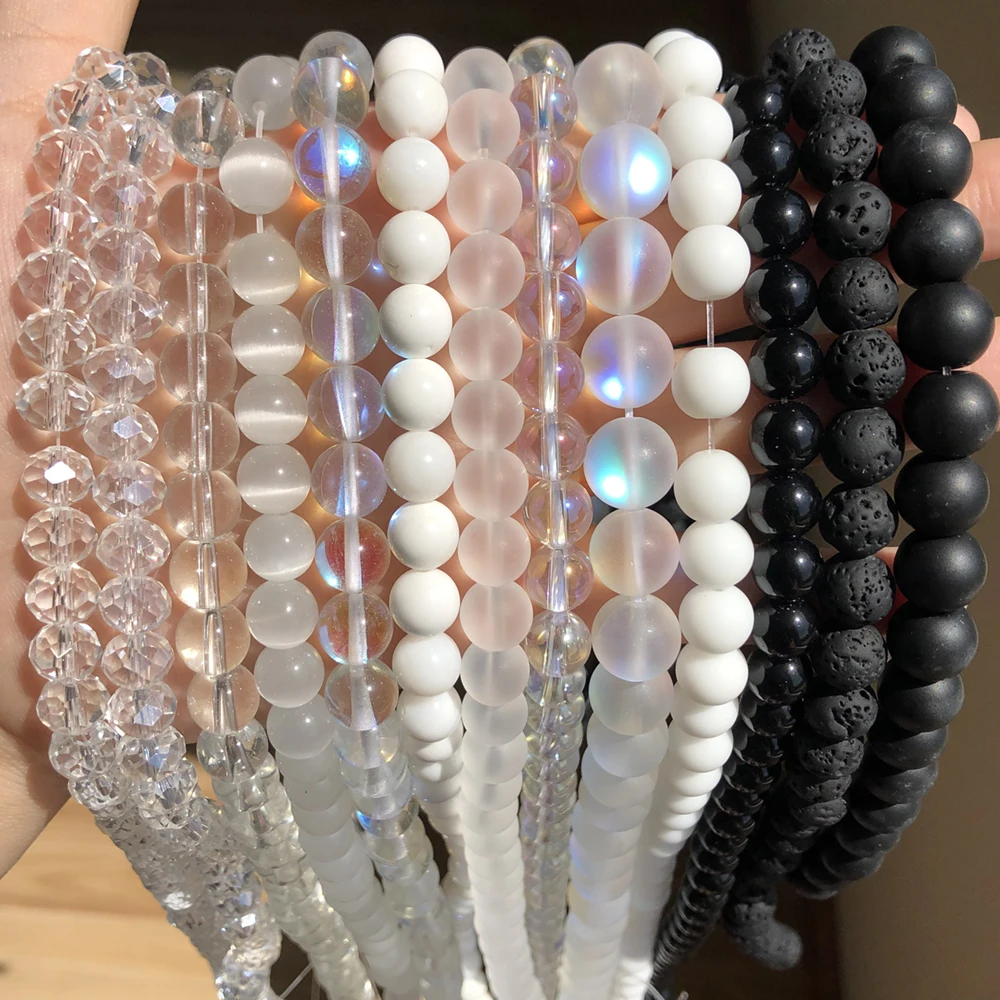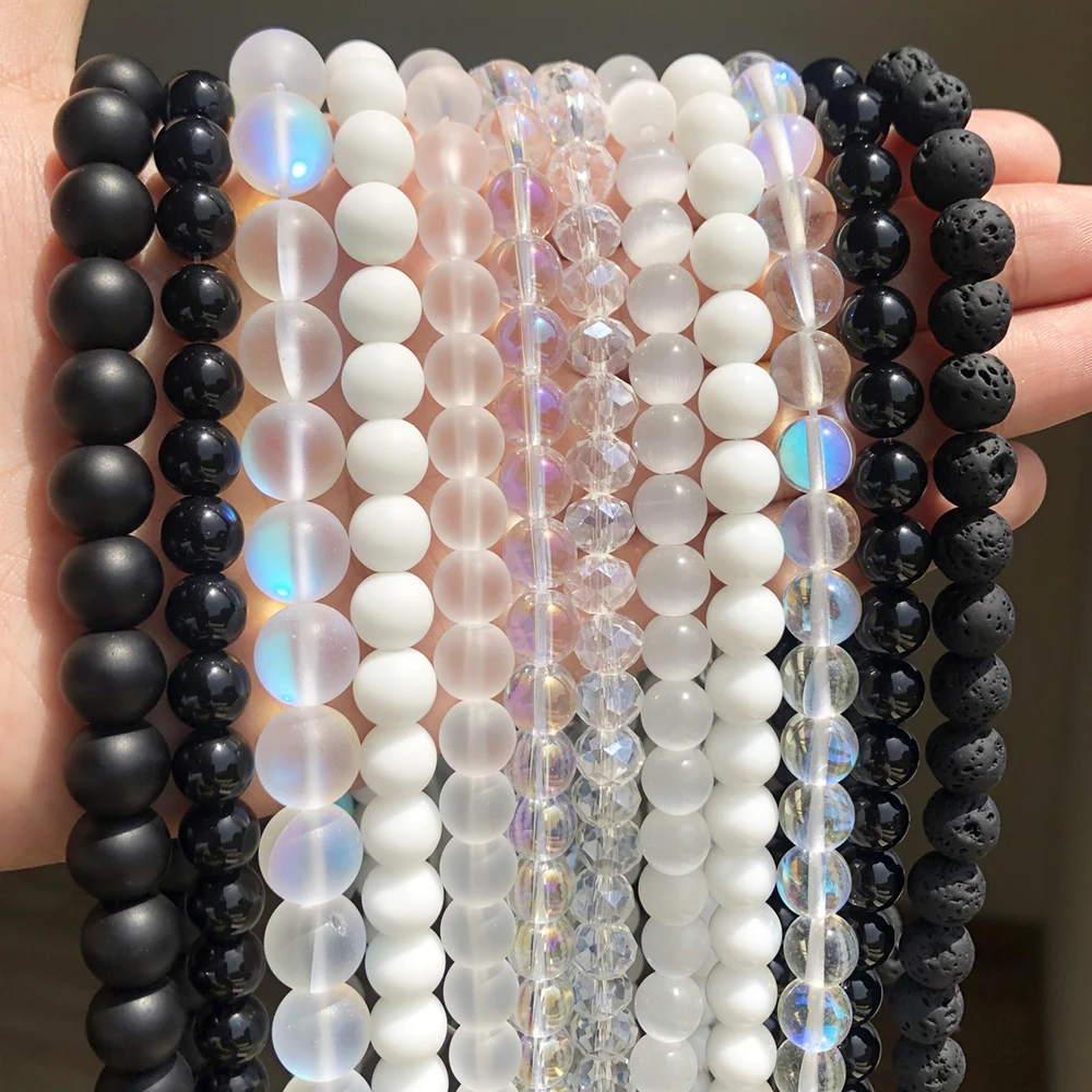 Натуральный Матовый черный, белый цвет Агаты с украшением в виде кристаллов вулканического камня Гладкие Круглые бусины Свободные бусины для самостоятельного изготовления ювелирных изделий браслет 4681012 мм
