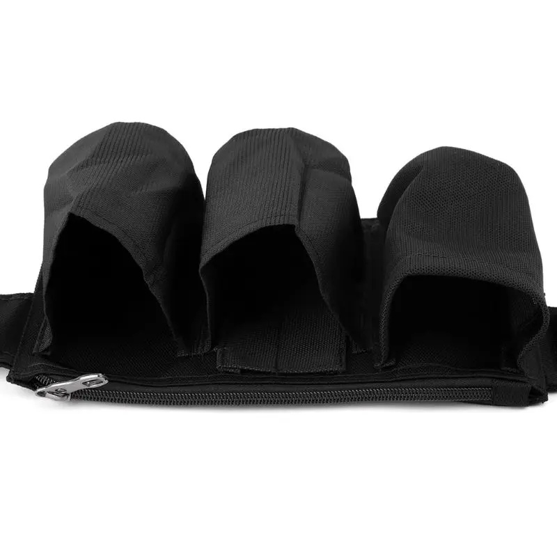 Регулируемый ремень позволяет легко повесить сумку для инструментов на ремень или на талию.