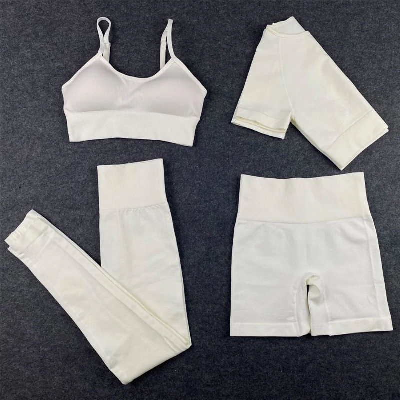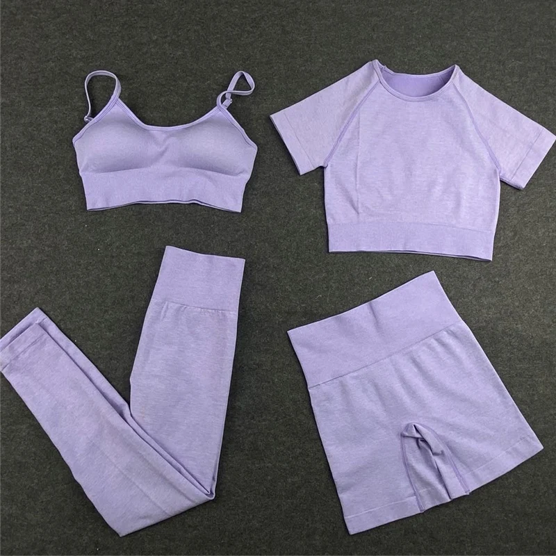 24 шт. бесшовные леггинсы + короткий топ с коротким рукавом + спортивный бюстгальтер + спортивные шорты Комплект для йоги спортивная одежда для женщин Одежда для спортзала спортивный костюм