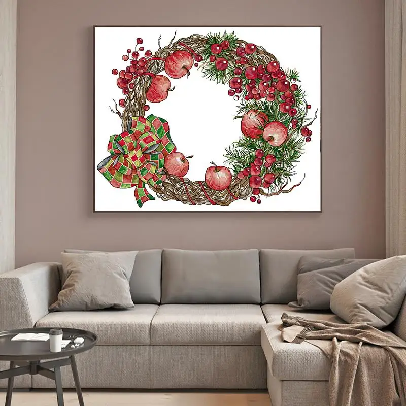 Гирлянда-Рождественский Набор для вышивки крестиком с изображением яблока 14CT 11CT, печать на холсте, вышивка, рукоделие, праздничные украшения, ремесла