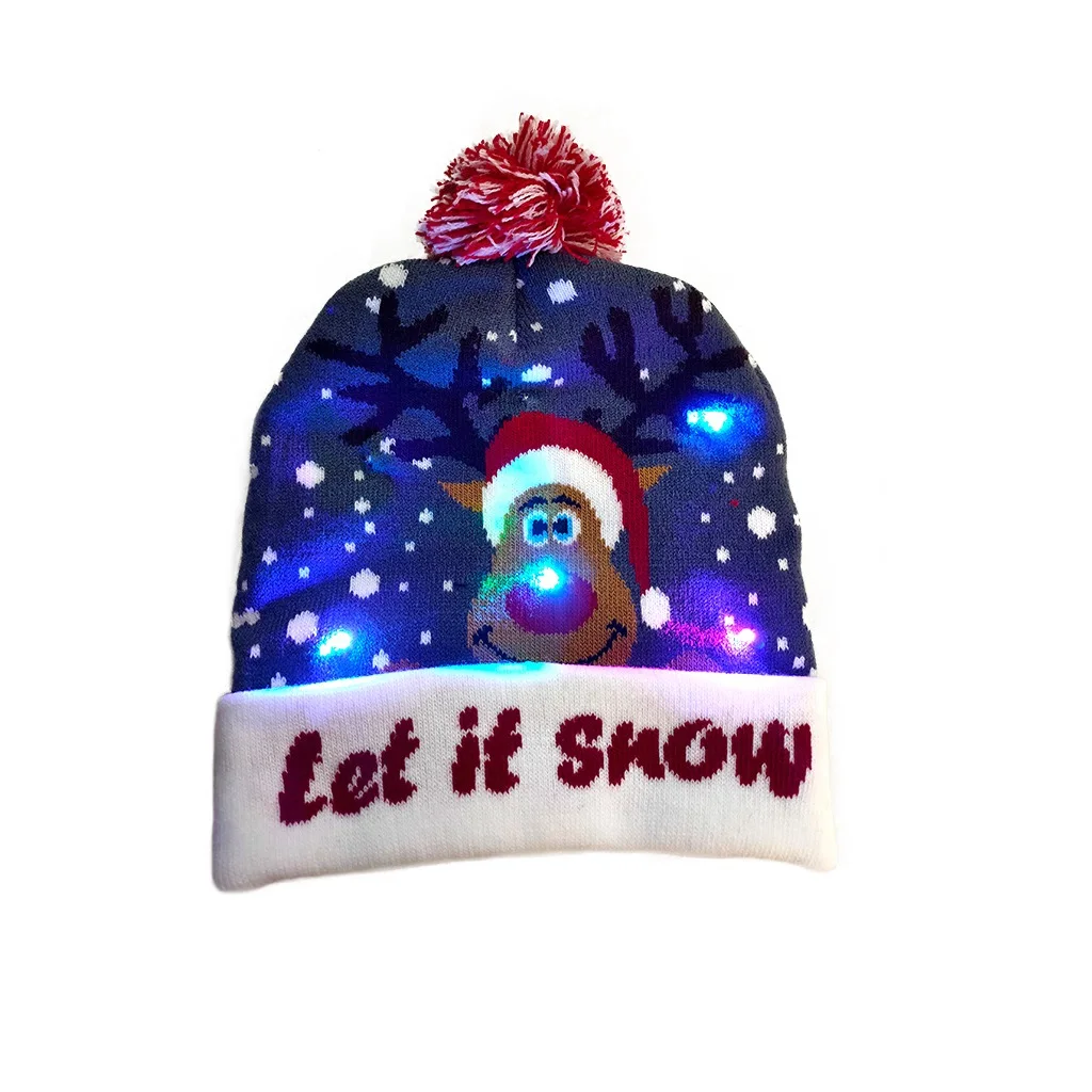 Светодиодный вязанная Рождественская шапочка свитер, вязаная шапка ...
