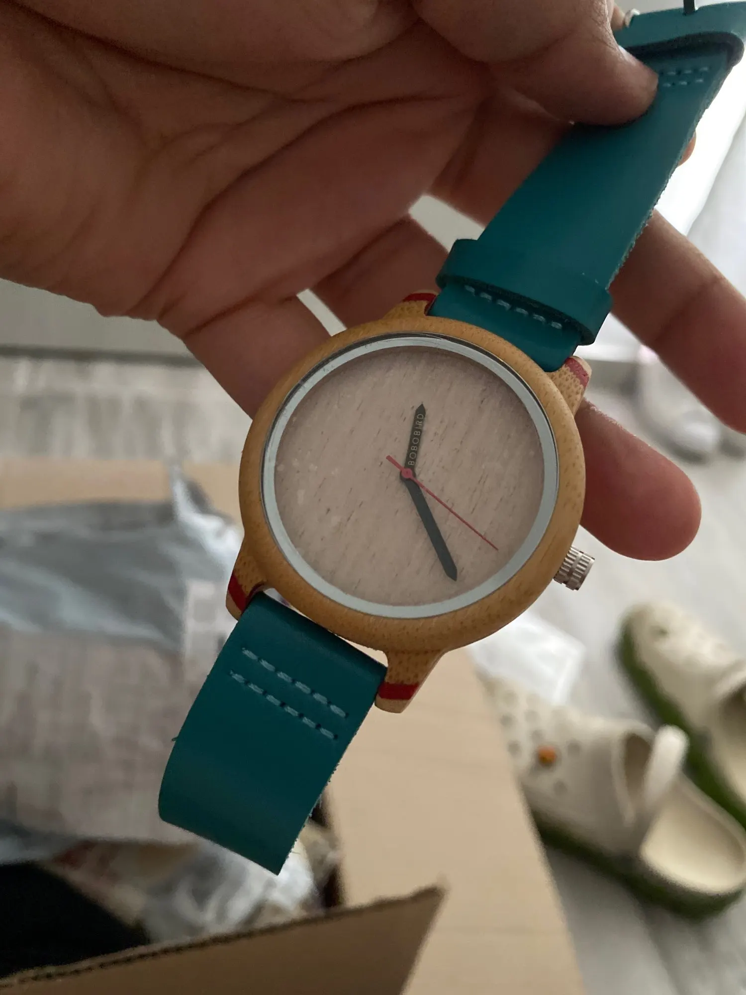 Часы наручные мужские с деревянным ремешком, кварцевые с зеленым си...