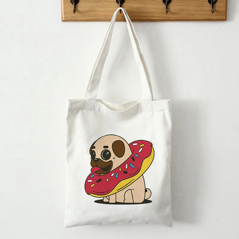 Парная одежда, симпатичный мопс, Пончик, мультяшная собака, хорошо продается, холщовые сумки-тоуты для покупок, сумки, винтажные милые панковские сумки в стиле Харадзюку