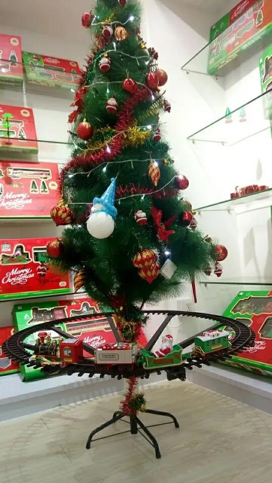 Рождественский подарок, Рождественское украшение, семейный Рождественский поезд, электрический игрушечный автомобиль со звуком светильник, можно повесить на дерево