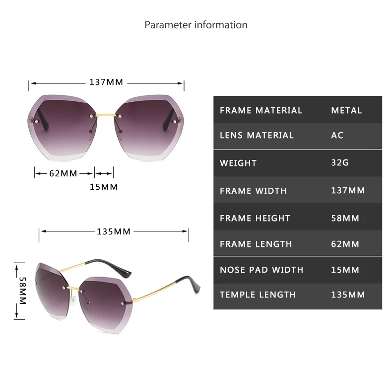 Солнечные очки без оправы UV400 женские, модные солнцезащитные аксе...