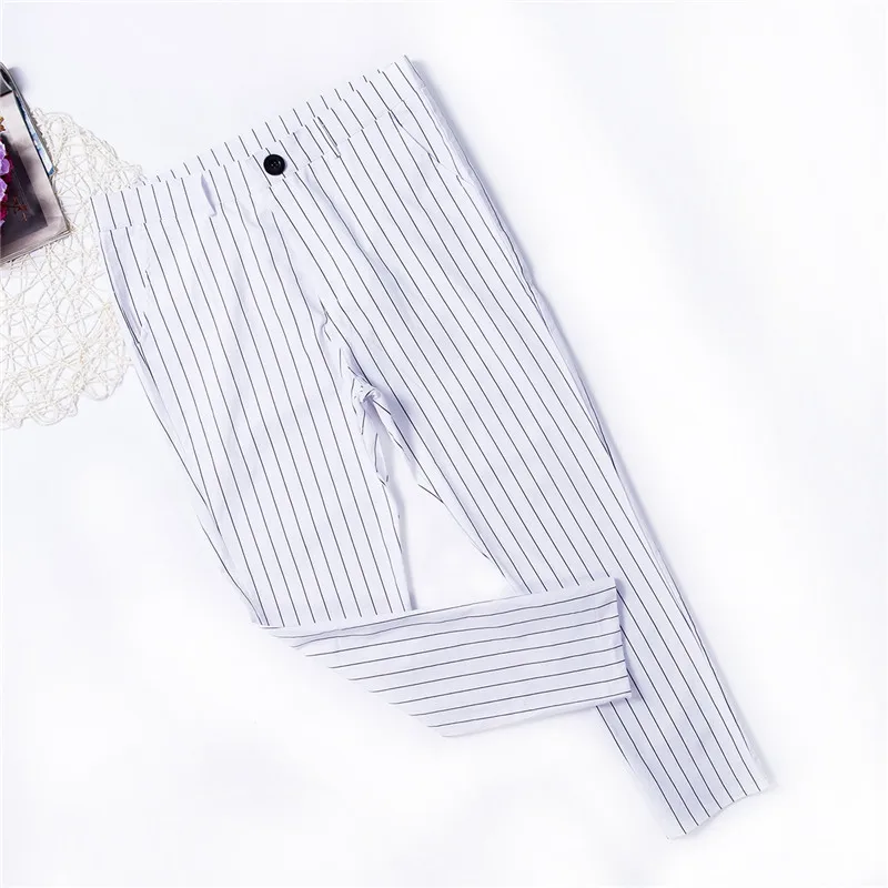 Модные мужские облегающие деловые строгие брюки в полоску, повседневные офисные обтягивающие длинные прямые джоггеры, спортивные брюки, мужские брюки