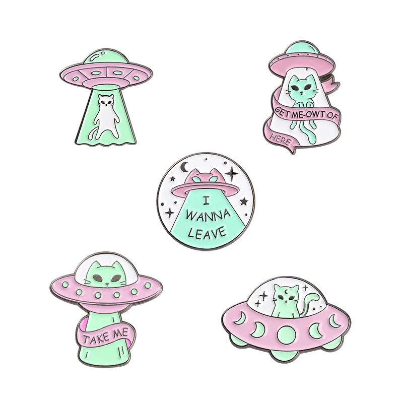 Эмалированный значок в виде НЛО, инопланетянина, броши-кошки для детей, мультяшный значок на лацкан, для рюкзаков, ювелирное изделие, подарок, оптовая продажа