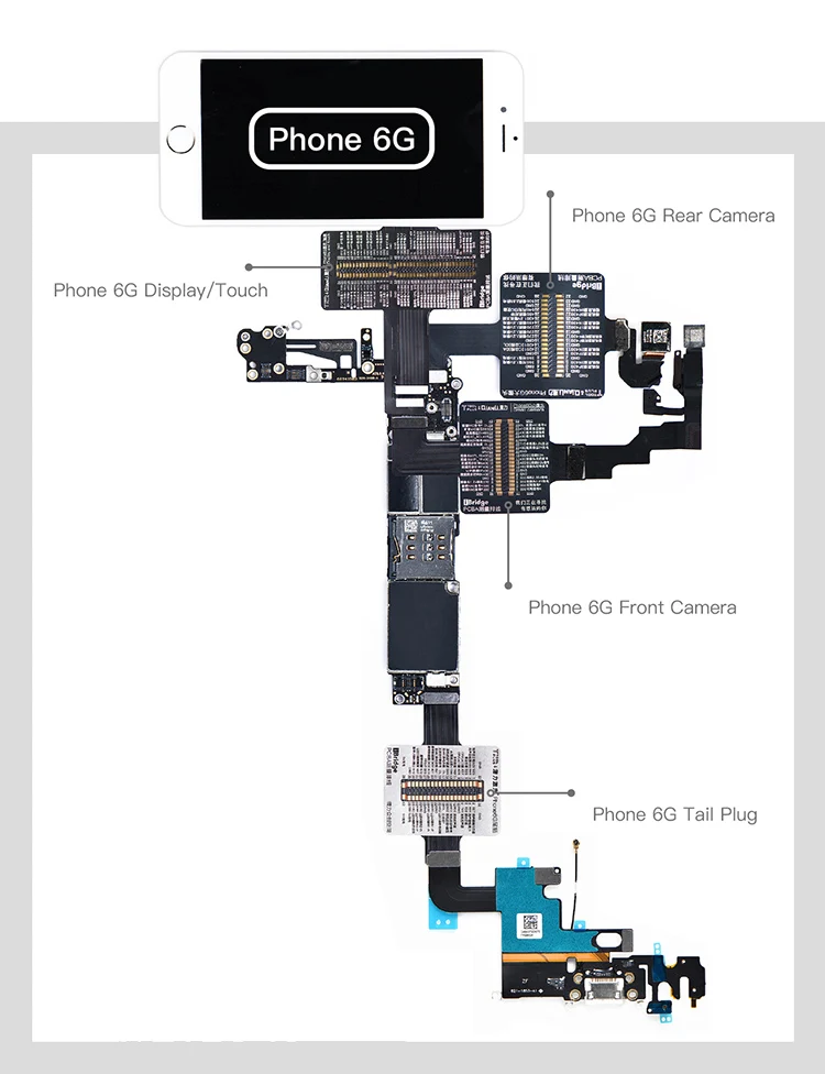 4. Этот тест cabel для iphone 6/6p/6s/6sp/7/7p/8/8P/X каждая модель имеет 4 типа тестового кабеля как: задняя камера,