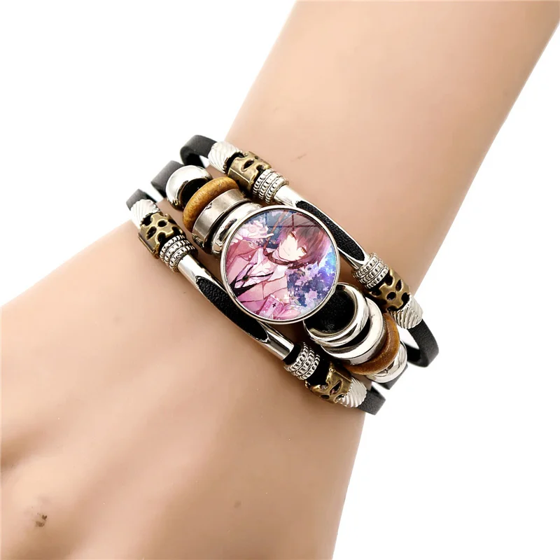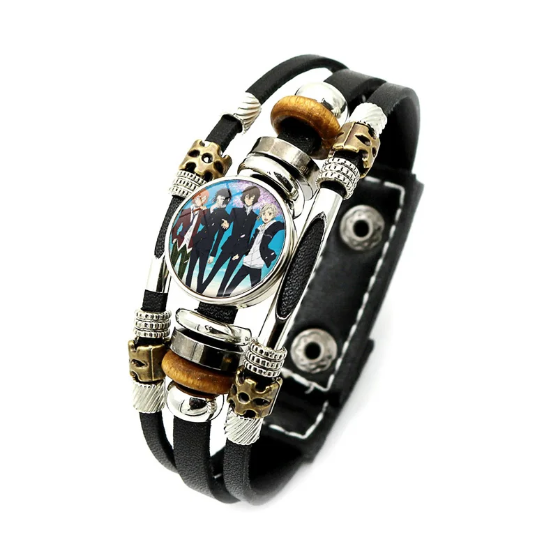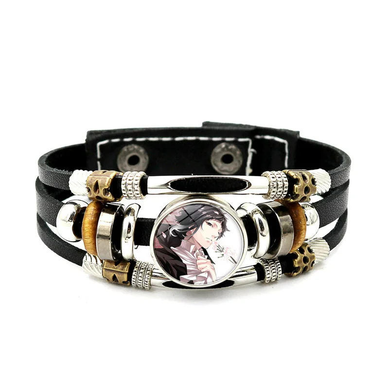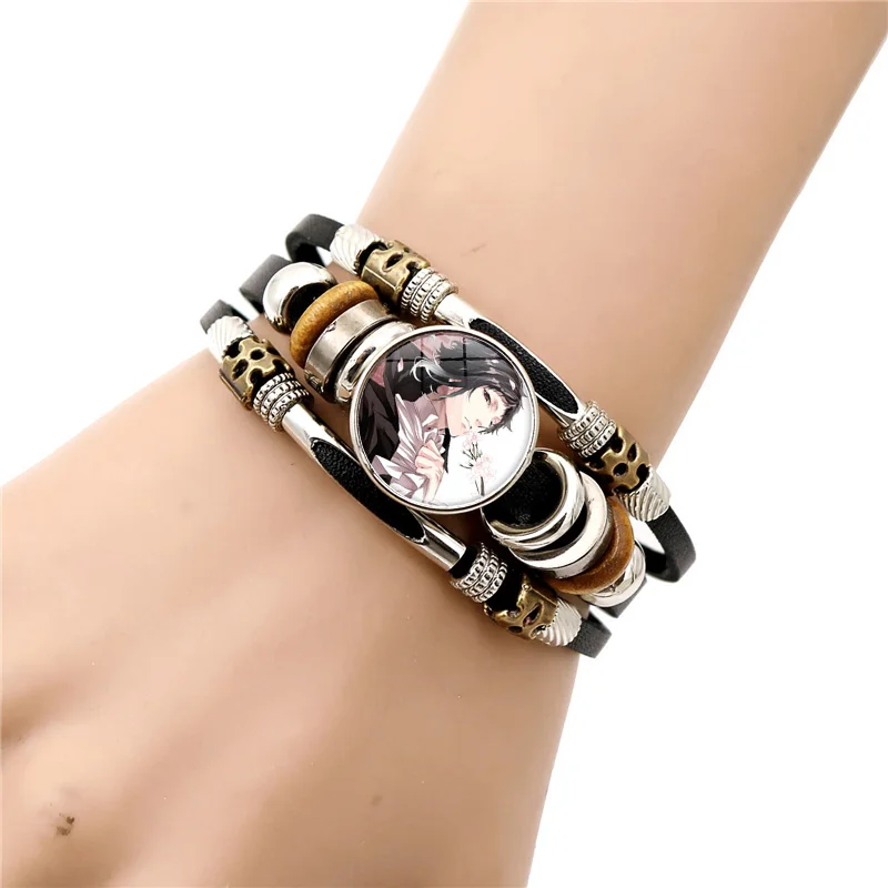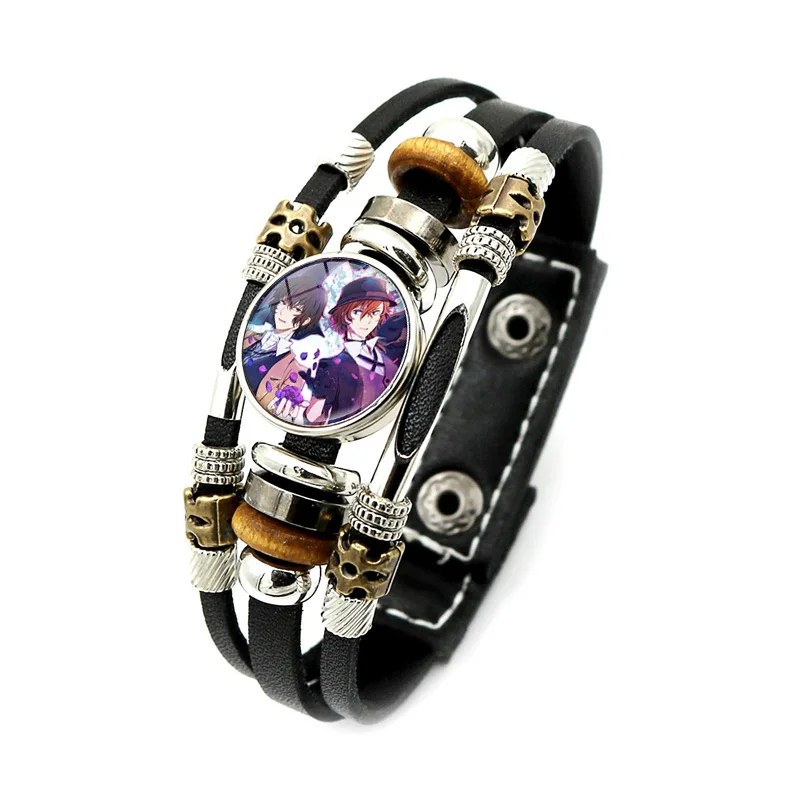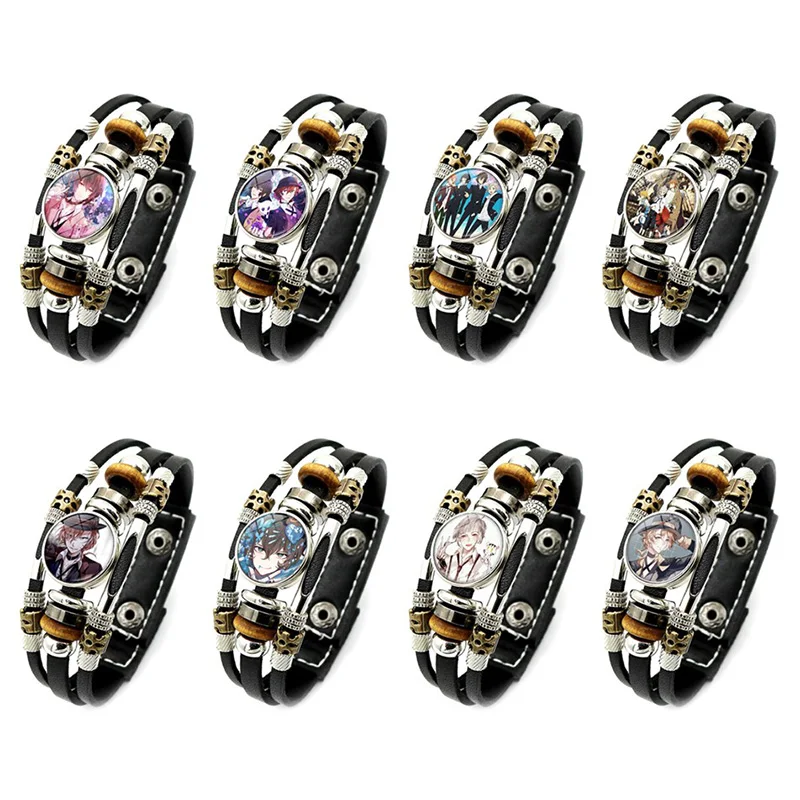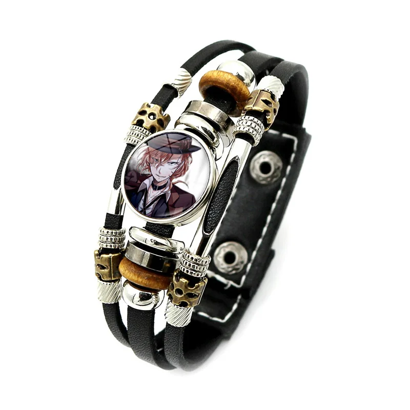 Кожаный браслет с аниме бродячие псы, ювелирные изделия, косплей, мультяшная фигурка накахара чуя, художественные стеклянные браслеты с кнопками для женщин
