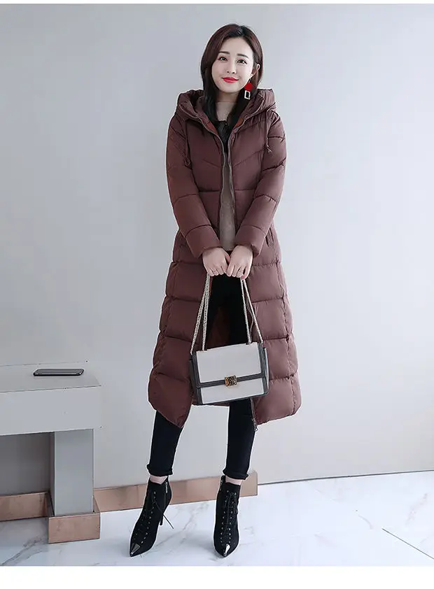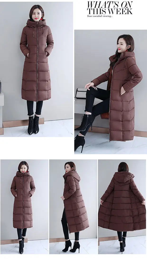 Куртка женская хлопковая, Ультралегкая, с капюшоном, ветрозащитная, теплая, длинная, зимняя, 2021