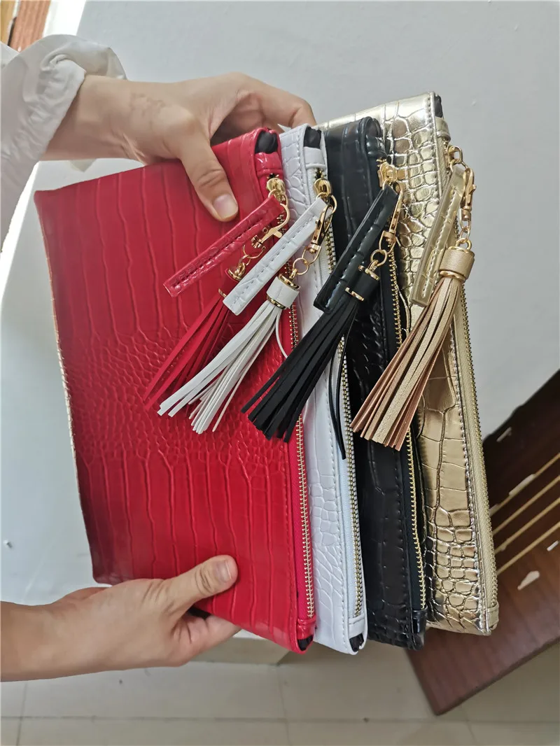 Модная женская сумка-клатч с кисточками; Новинка 2022 года; Женская сумка-конверт из искусственной кожи крокодила; Вечерняя сумка; Женские клатчи; Сумочка и сумочка; bolsa