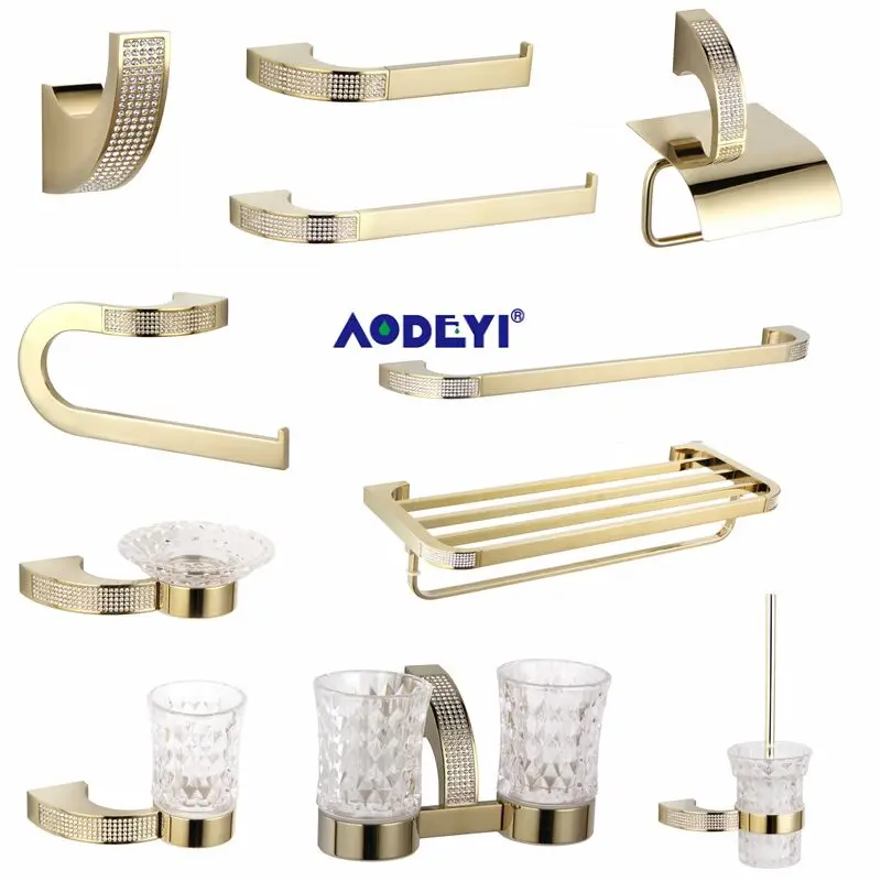 Настенный Набор инструментов для ванной комнаты и туалета с чешским кристаллом, держатель для зубных щеток, рельсовая стойка, полка, аксессуары для ванной комнаты, золотойхром