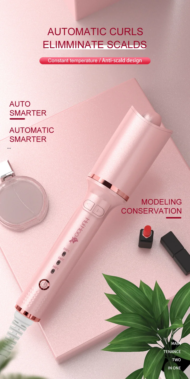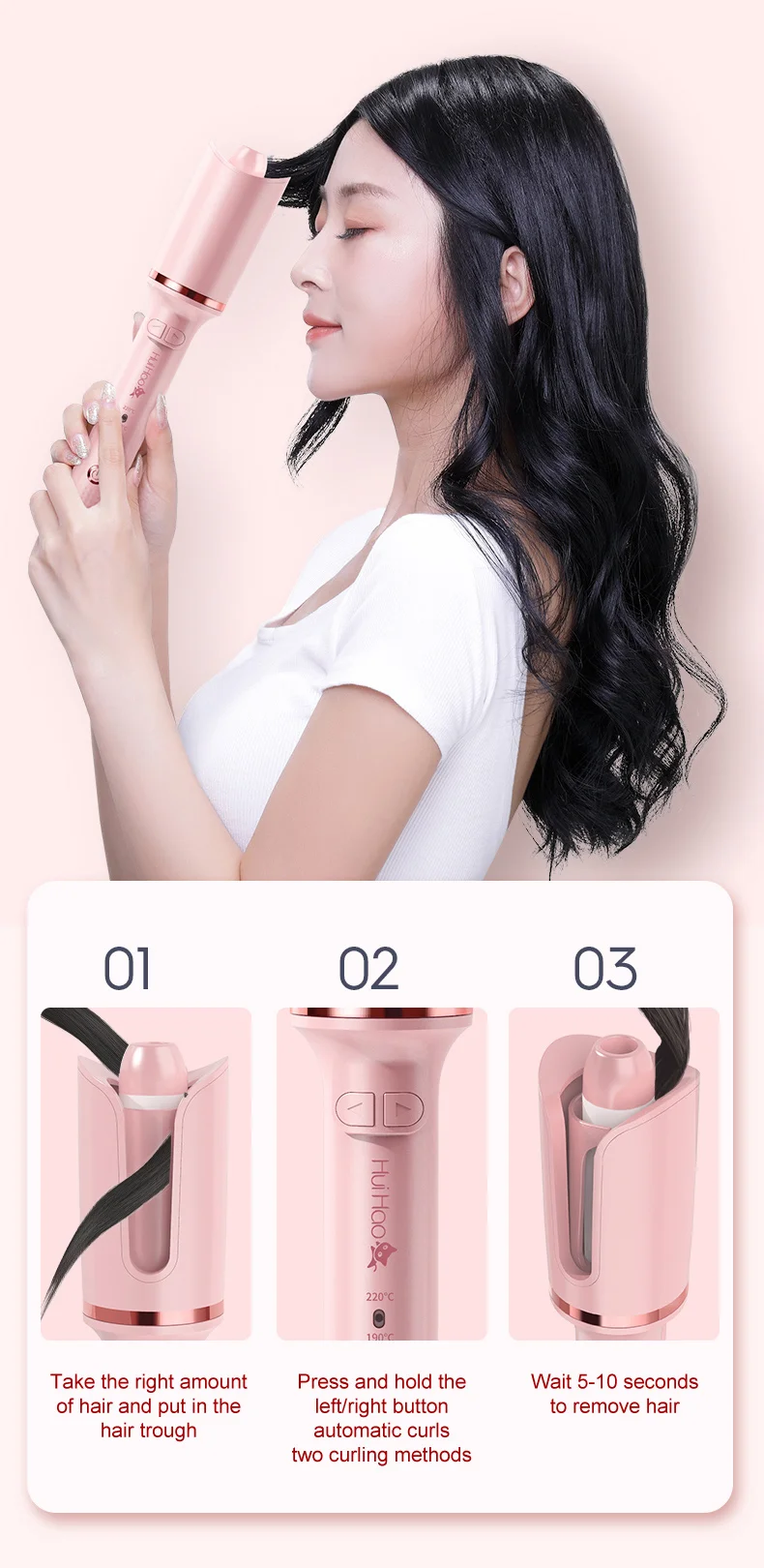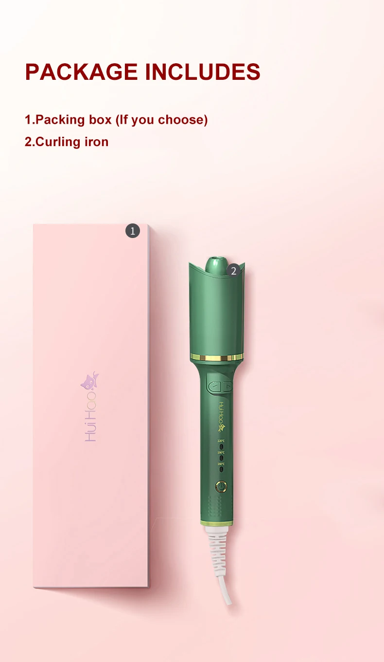 Название: автоматические бигудиМаксимальная температура: 220 °CМинимальная температура: 160 °Мощность: 25 Вт-39 ВтСертификация качества товара: 3C /CEРегулятор температуры: ЦифровойПрименимые волосы: сухие и влажныеДиаметр теплового проводника: 21-30 мм режим сборки шнура питания: 360 °Материал: пластик
