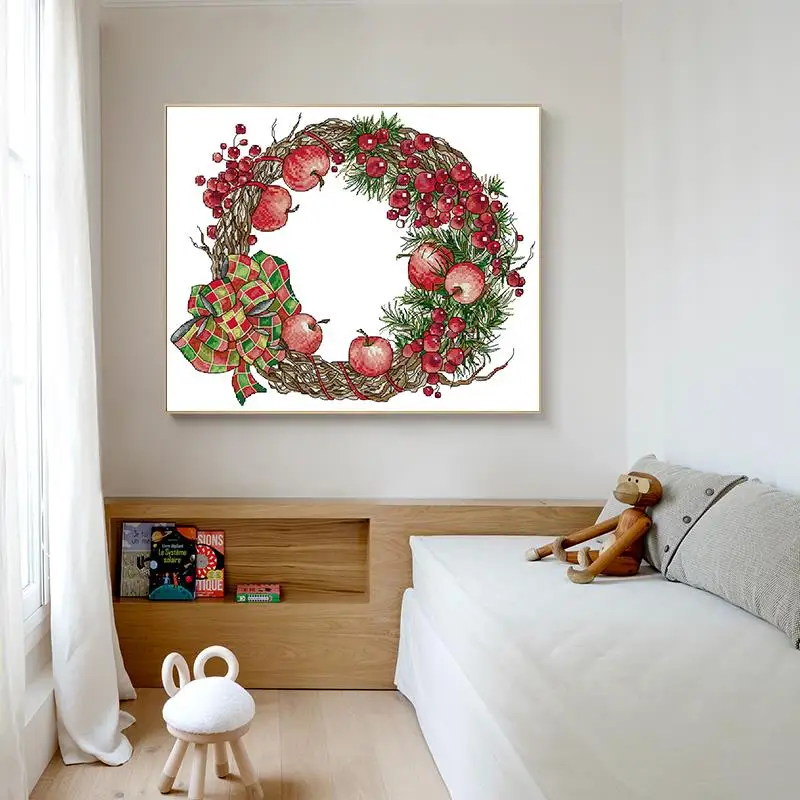 Рождественский венок с яблоками, Набор для вышивки крестиком, сделай сам, 14 карат, 11 карат, вышивка, набор для шитья, картина для украшения дома