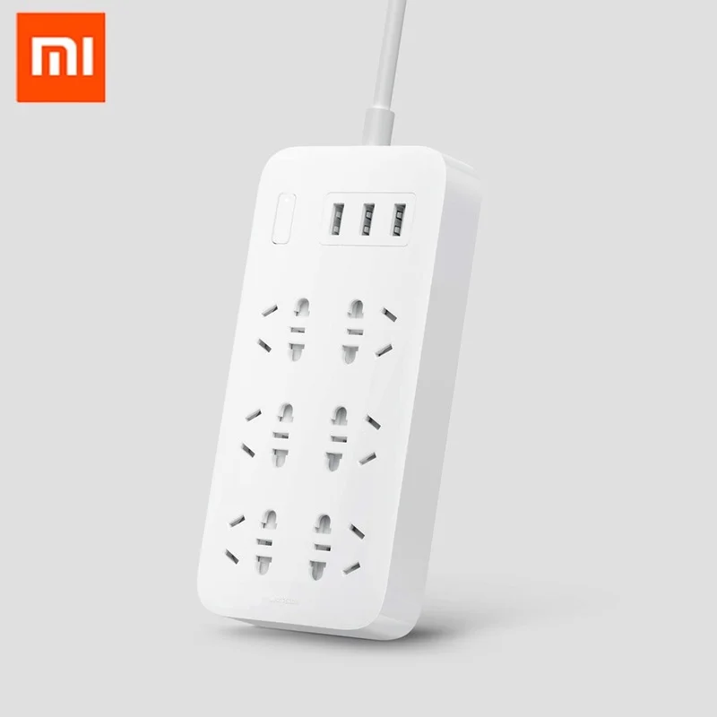 Оригинальный Xiaomi Mi мощность розеток 1,8 м с 3 портами (стандарт 5V 2.1A быстрой зарядки удлинитель 6 розеток с предохранителем и универсальным питанием-от источника переменного или двери