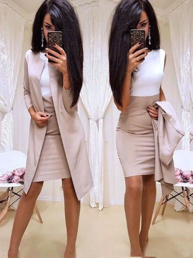 Осенние деловые костюмы с платьем, Женский блейзер с длинным рукаво...