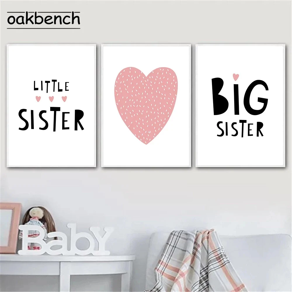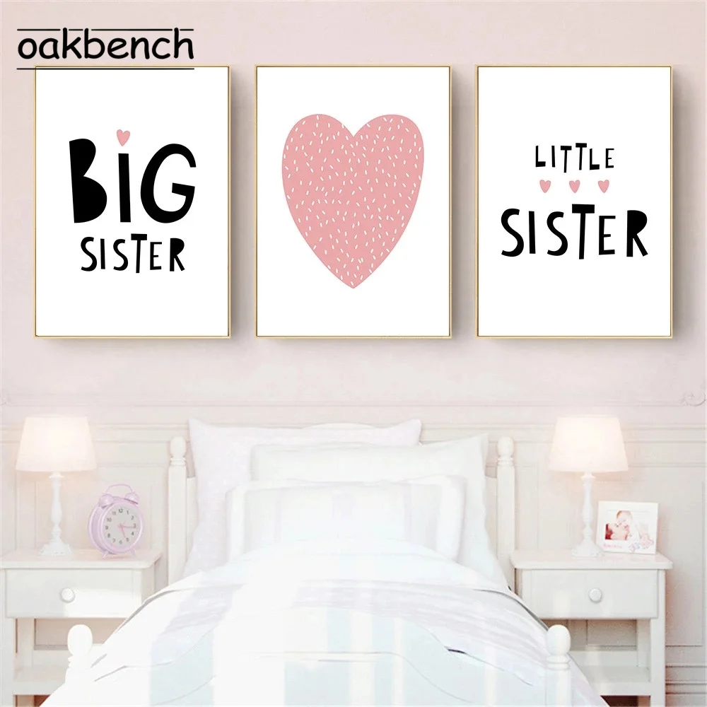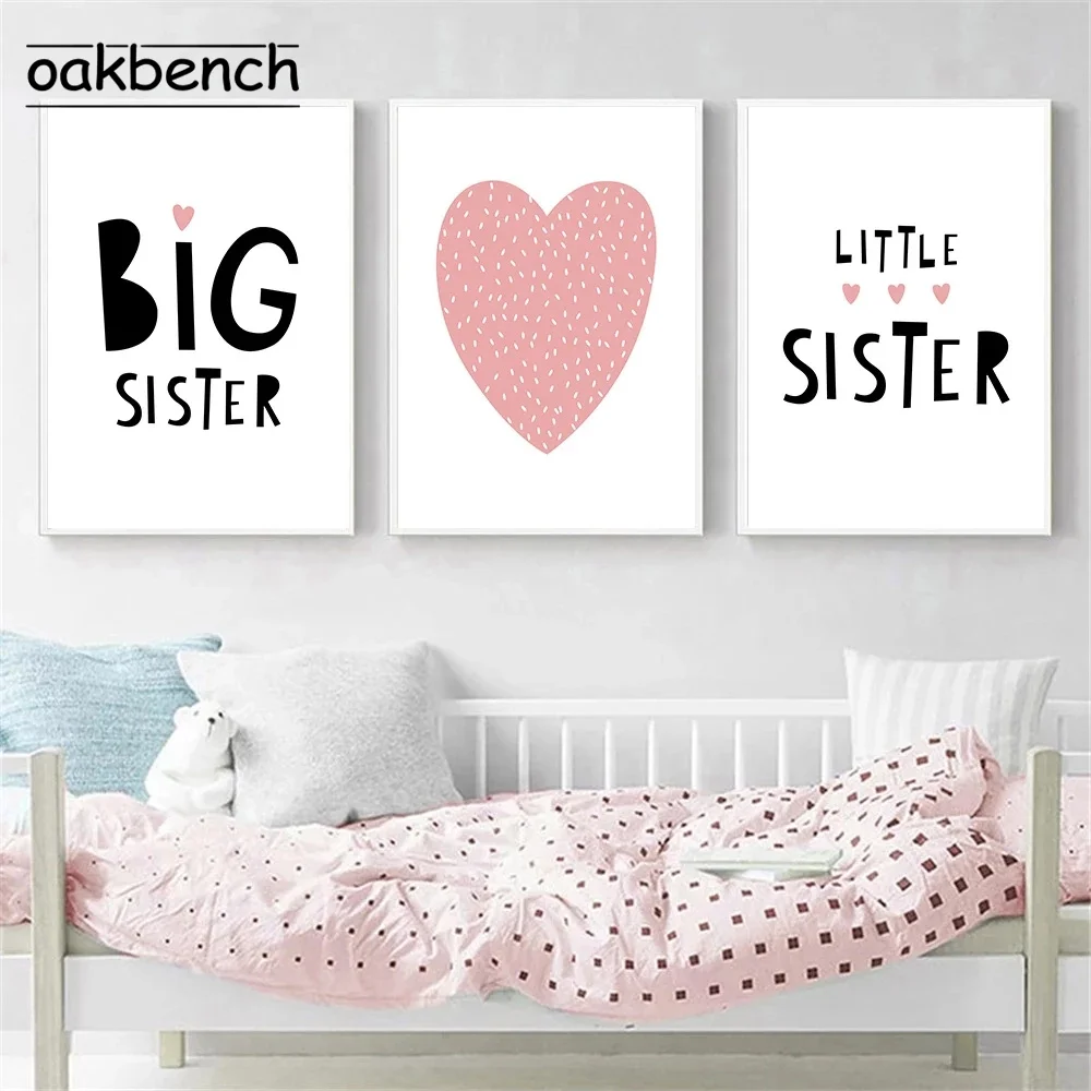 Настенная картина для детской комнаты, большие маленькие плакаты на холсте, принт в виде розовых сердец, Постер в скандинавском стиле, минималистичные настенные картины для декора детской комнаты
