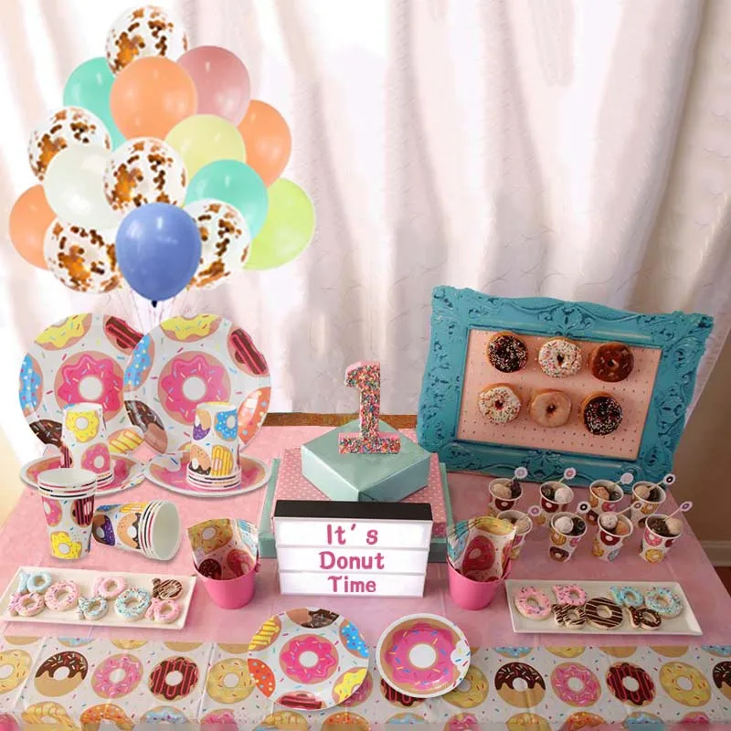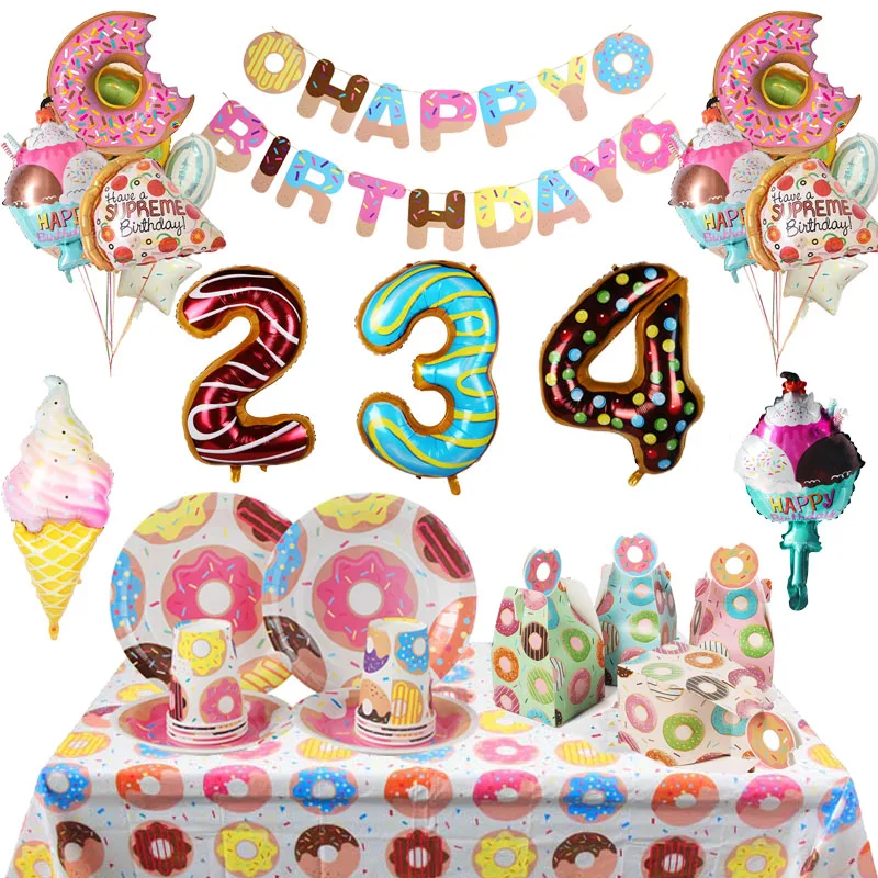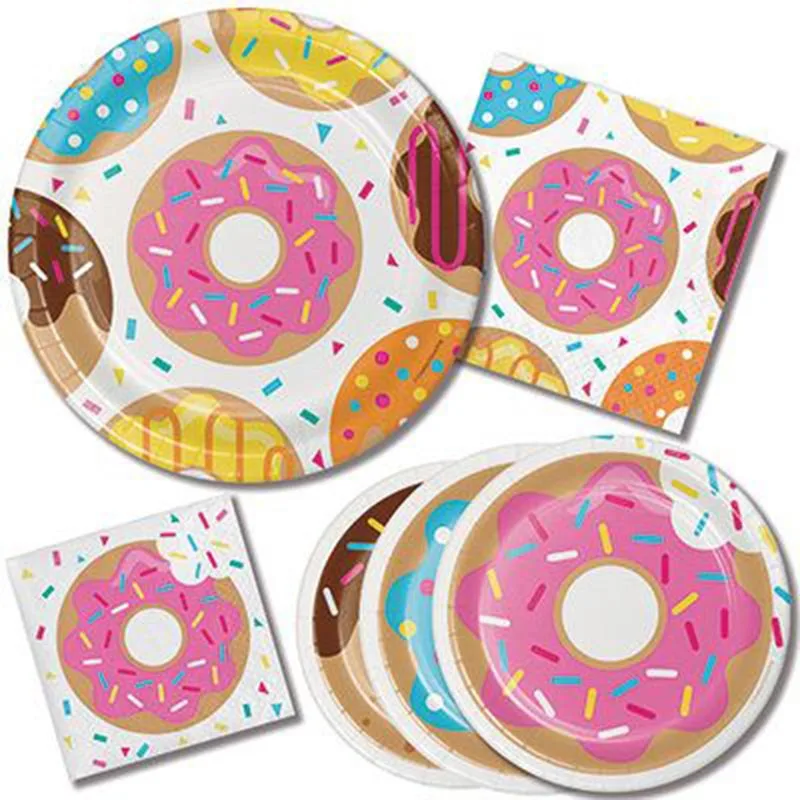 Набор одноразовой посуды для вечевечерние в виде пончиков, бумажные стаканчики, тарелки, салфетки, шары с мороженым, конфеты, украшение для бара и вечеринки, украшение для вечевечерние, детский день рождения