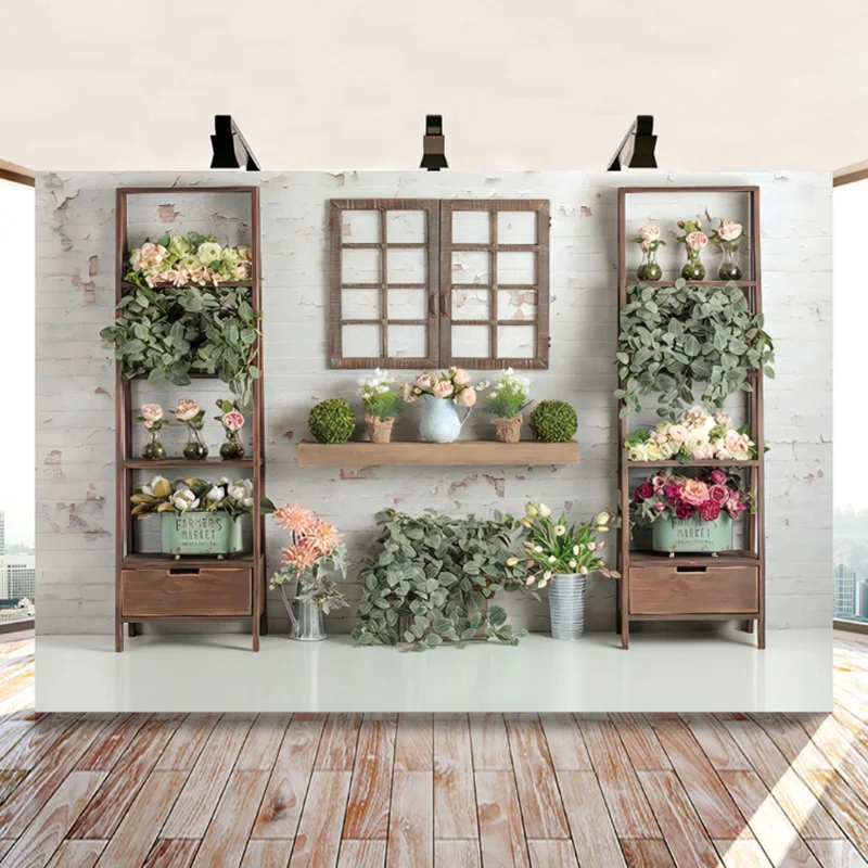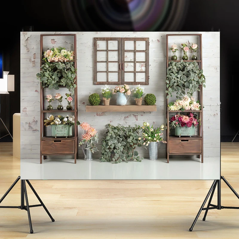 Фон для фотосъемки новорожденных с изображением деревянной доски и цветов