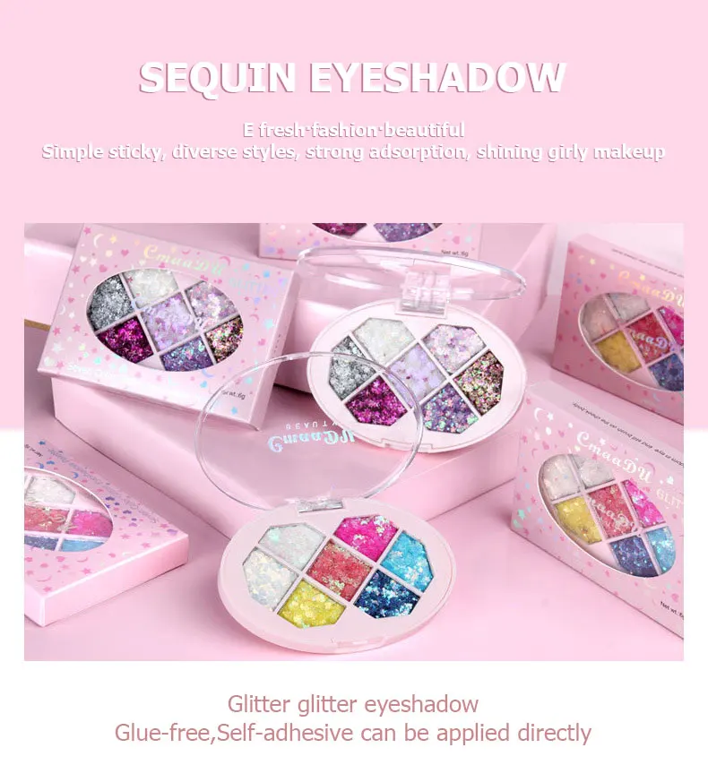 Тени для век 7 цветов блестящие бриллиантовые блестки пятиконечная ...