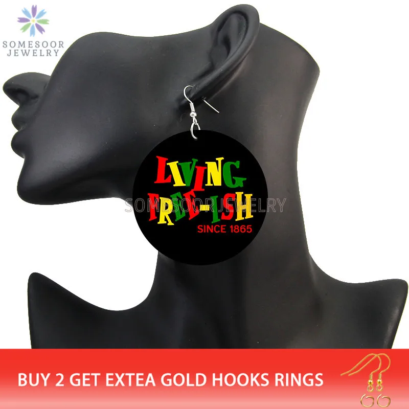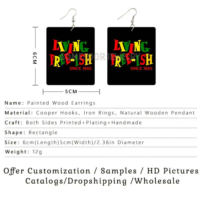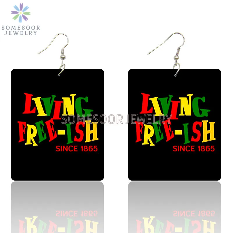 SOMESOOR Living Free-Ish с 1865 года, африканские деревянные висячие серьги с черными корнями, с принтом в истории, висячие украшения, подарок для женщин