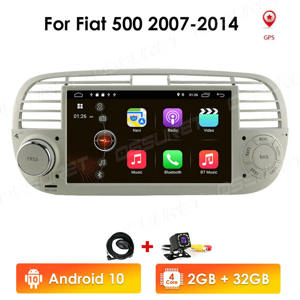 7-дюймовый автомагнитола, четырехъядерный автомобильный DVD-плеер на ОС Android 10 для FIAT 500, радио, GPS, DSP, Wi-Fi, 4G, Bluetooth, рулевое управление, стерео 2 + 16