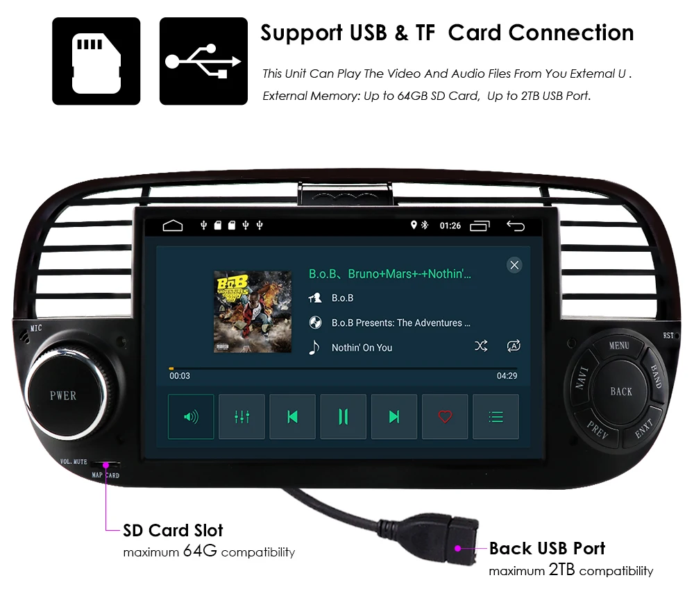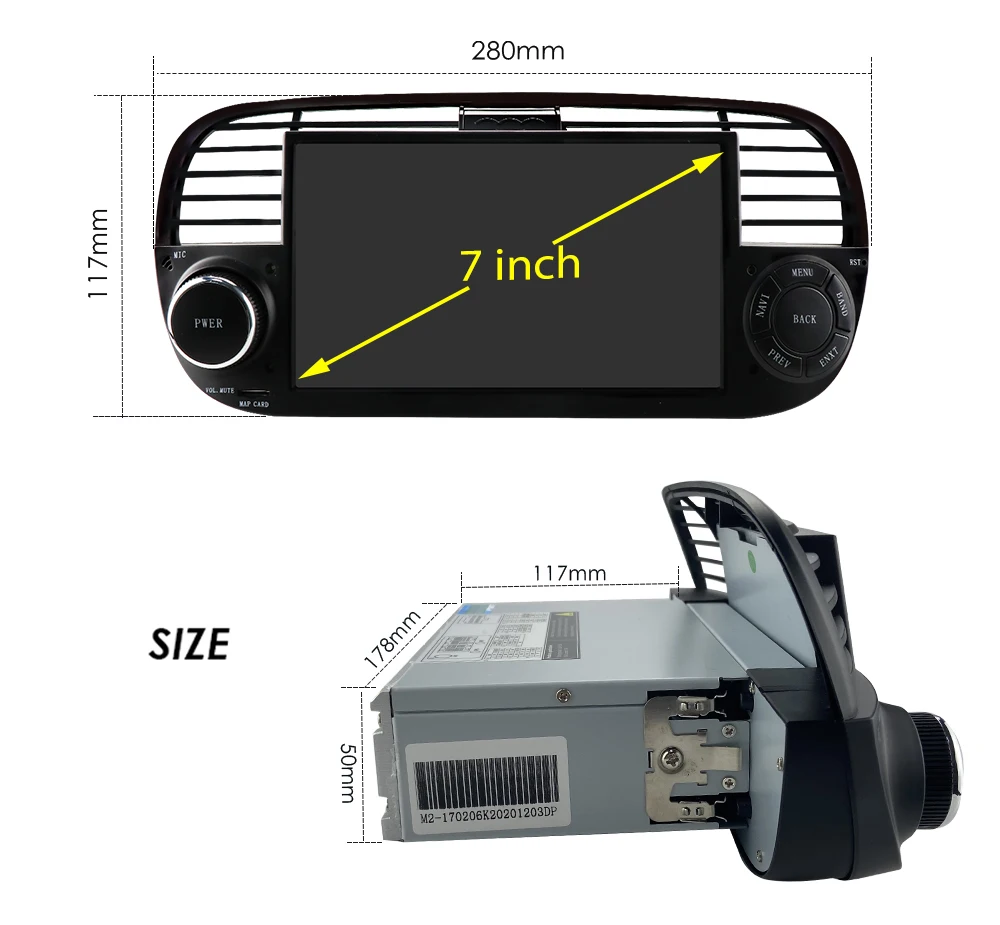 7-дюймовый стандартный мультимедийный плеер для FIAT 500 AM FM 2G 3...
