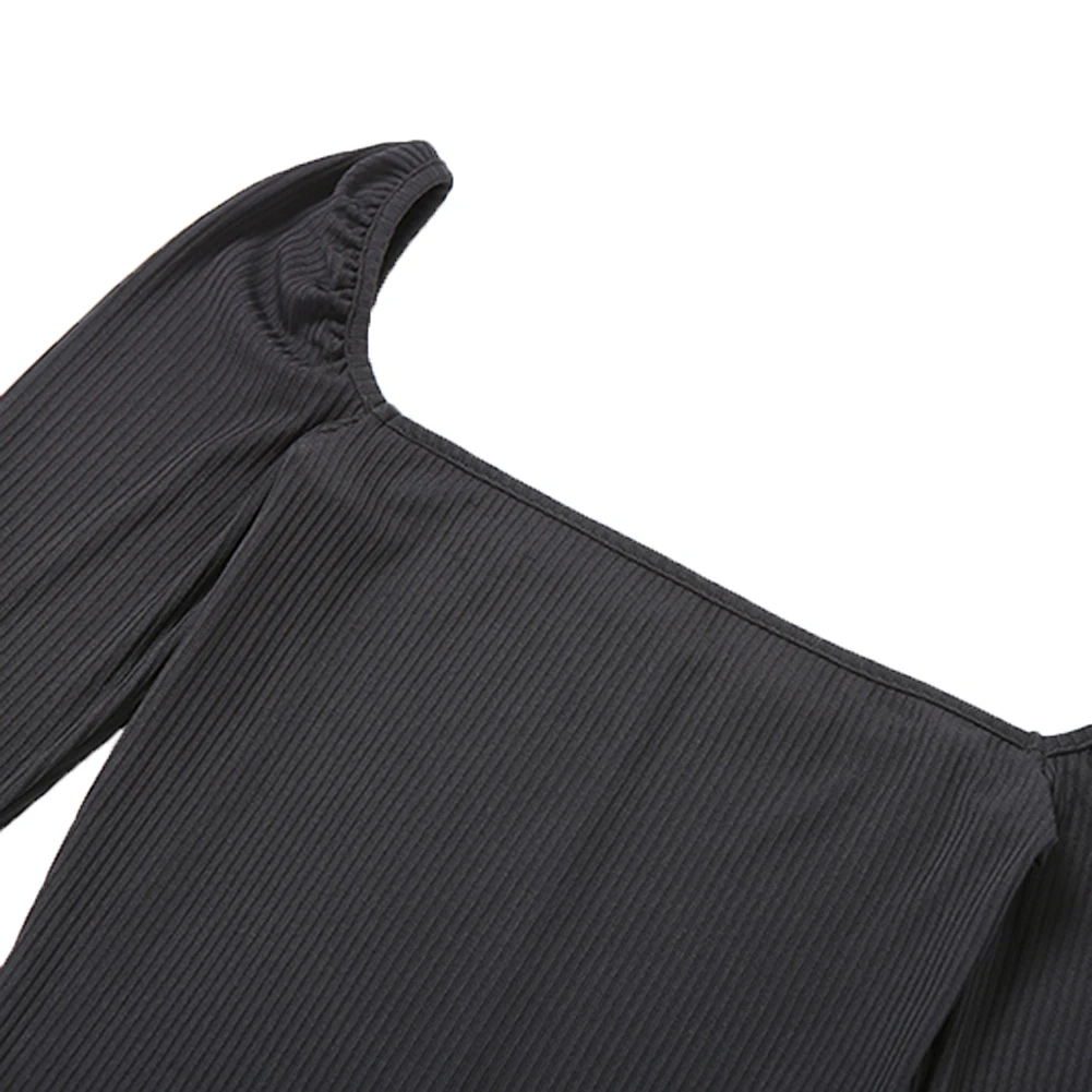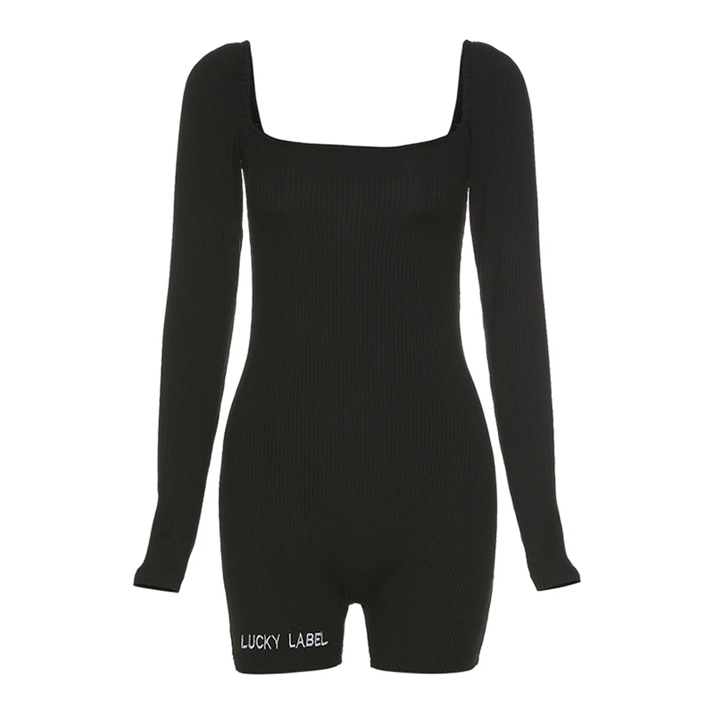 Черта:Женский комбинезон в рубчик SIBYBO, Черный Повседневный короткий комбинезон с квадратным воротником и длинным рукавом, облегающий Летний комбинезон