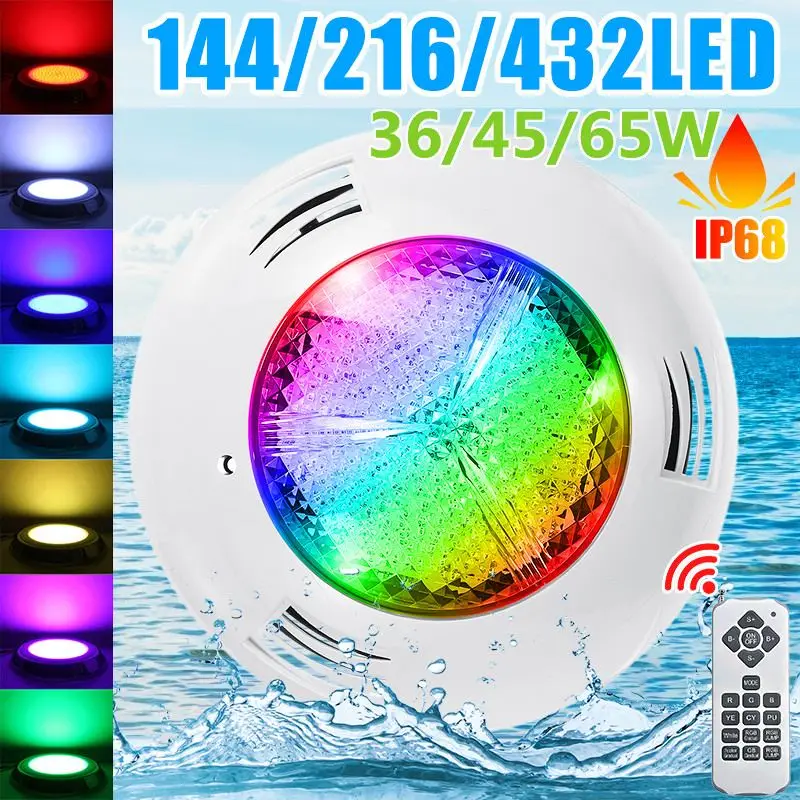 Светодиодные подводные фонари для бассейна, 12 В пер. тока, водонепроницаемая лампа с дистанционным управлением, меняющие цвет RGB, 3645 светодиодный 65 Вт, IP68