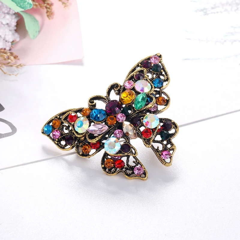 Хрустальные стразы, красочные броши в форме бабочки для женщин, Элегантная Брошь в виде насекомого, булавка, брошь на пальто, модные украшения для костюма