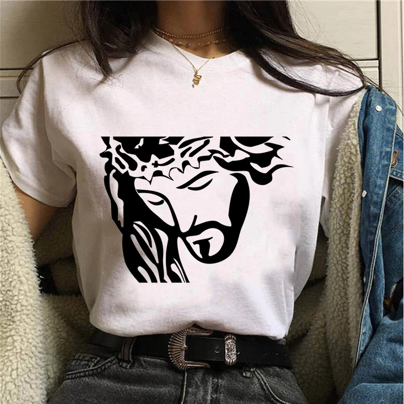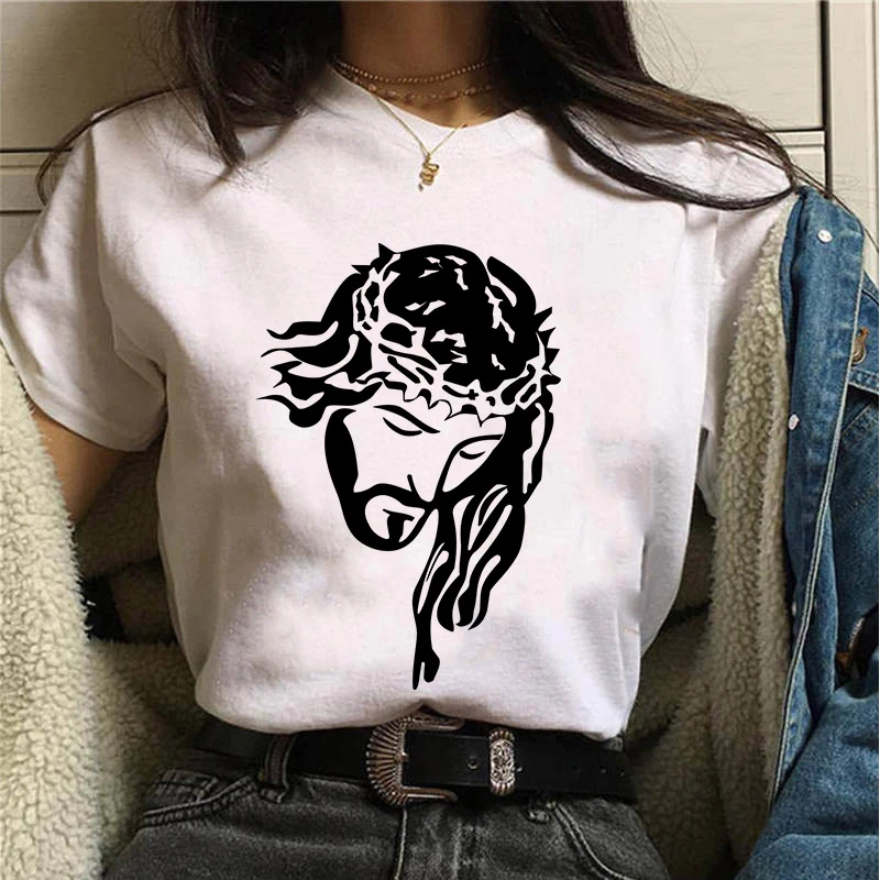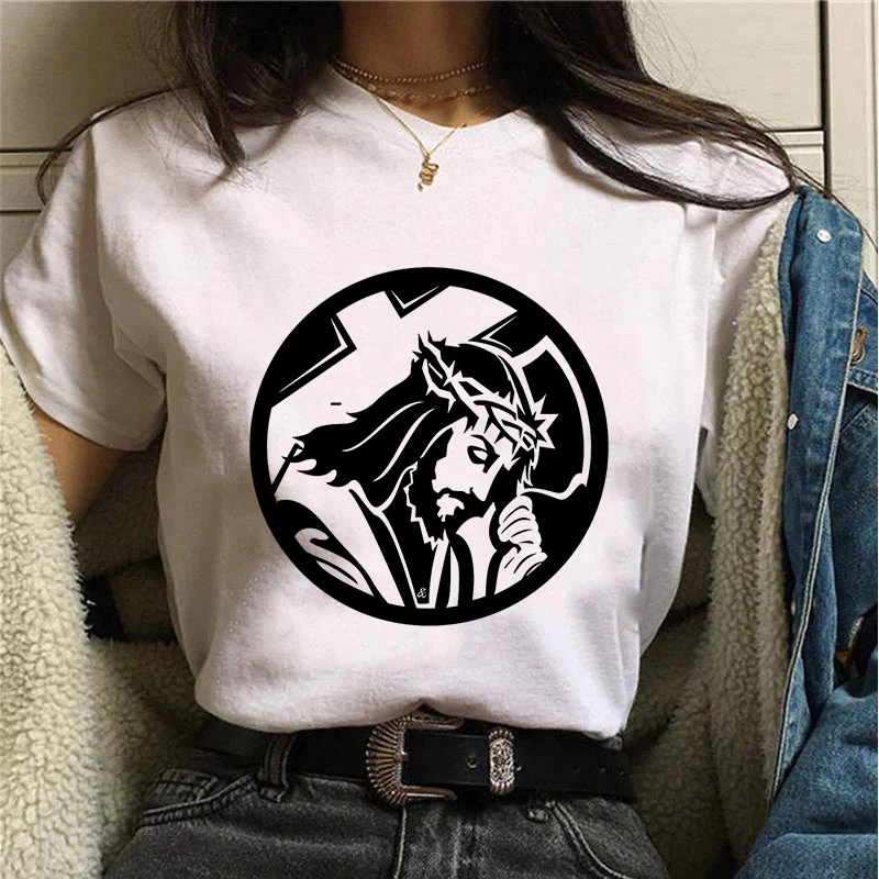 2021 Лидер продаж Летняя женская футболка Иисус графический принт футболка Женская Harajuku Модные солнцезащитные очки в стиле ретро с белый размера плюс футболка с коротким рукавом женский