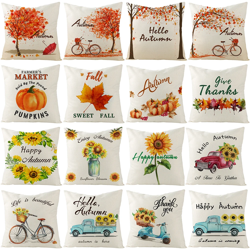Женский чехол 2021 дюймов, льняная наволочка в виде красного кленового листа, подсолнуха, дивана, автомобиля, наволочка, украшение для дома 45*45 см