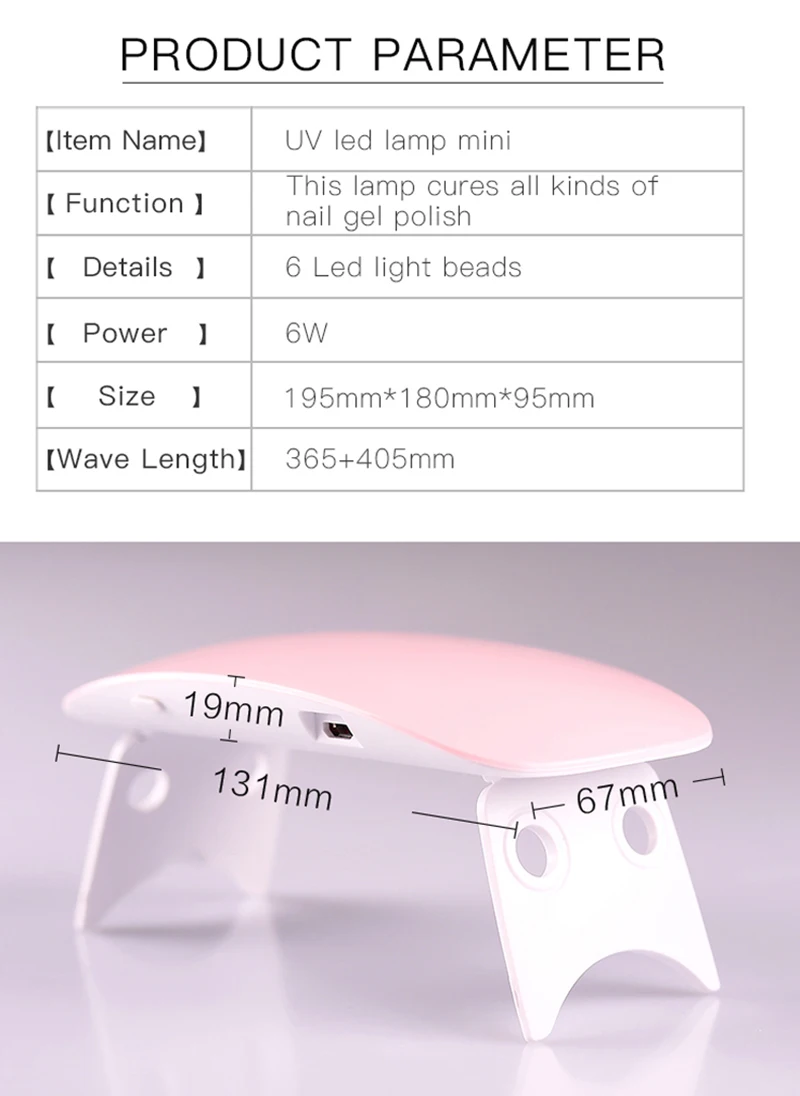 Мини 6 Вт УФ светодиодный светильник Сушилка лака для ногтей белый розовый дома Применение 45s60s Установка таймера гель для ногтей, фрезер косметический инструмент для ногтей наборы для ухода за кожей