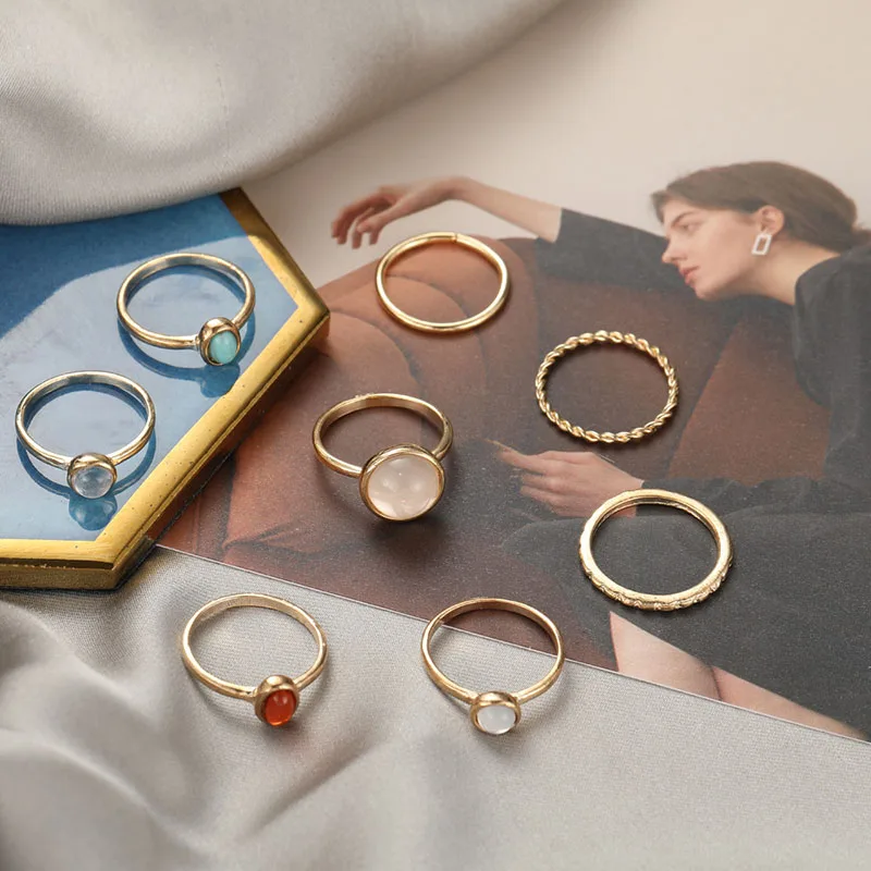 Винтажные кольца с натуральным лунным камнем 8 шт.компл., модные ко...
