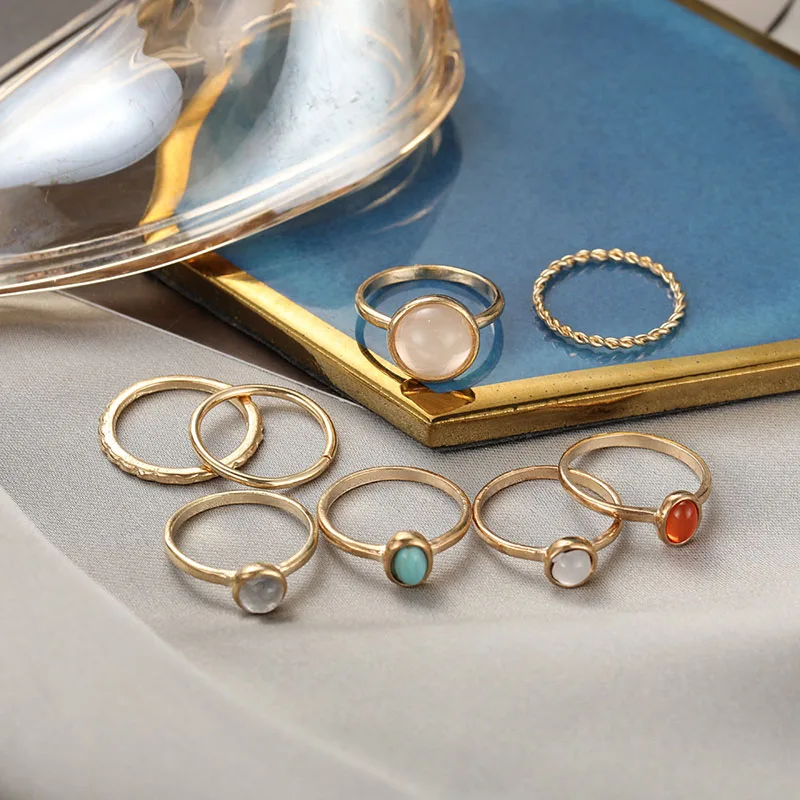 Кольцо женское, 8 шт.компл., винтажное, разноцветное, золотистое, с...