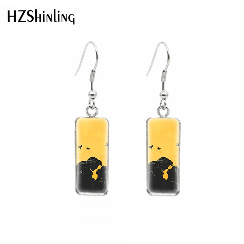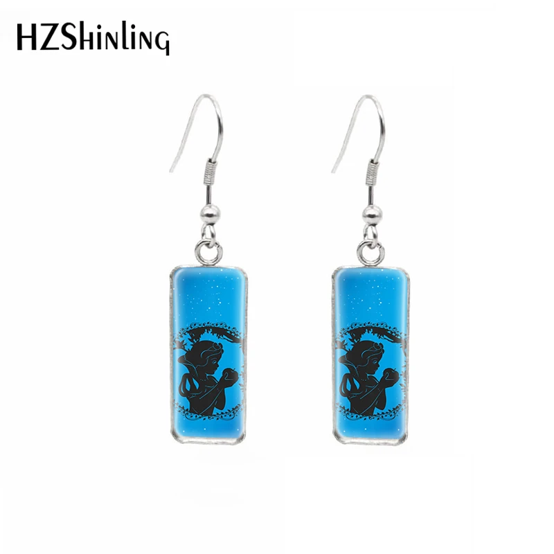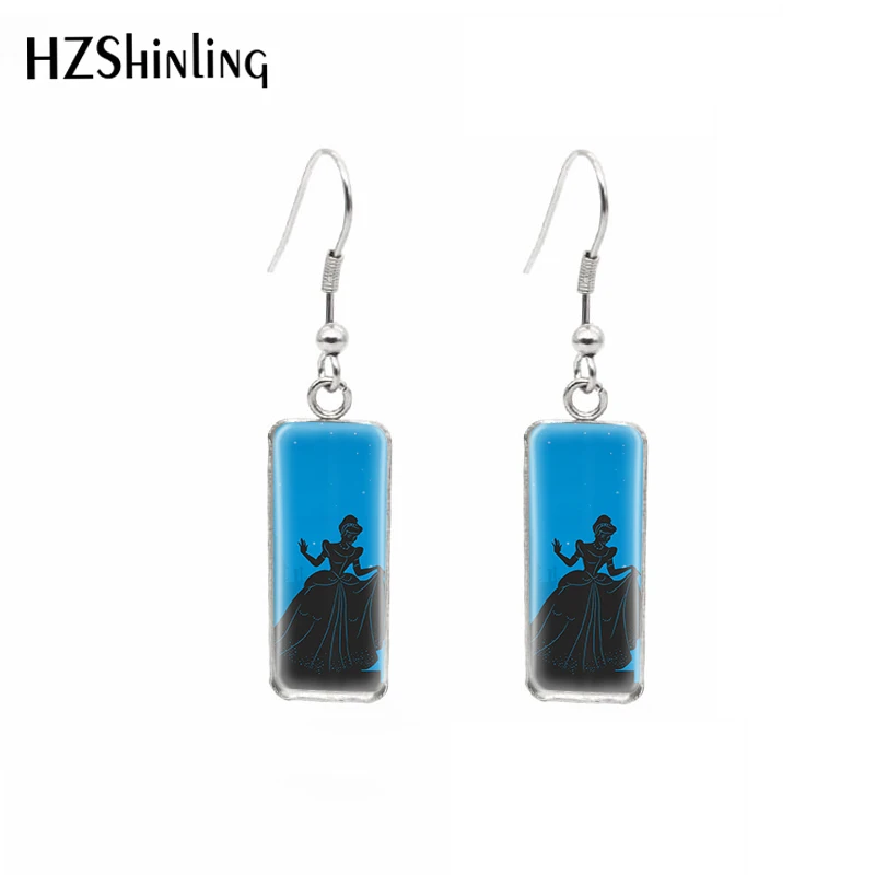 2021 Disney черного цвета с рисунками из мультфильмов платье принцессы картины узор прямоугольный крюк висячие серьги в виде капель с кабошоны разрисованные изделия из стекла, ушные украшения