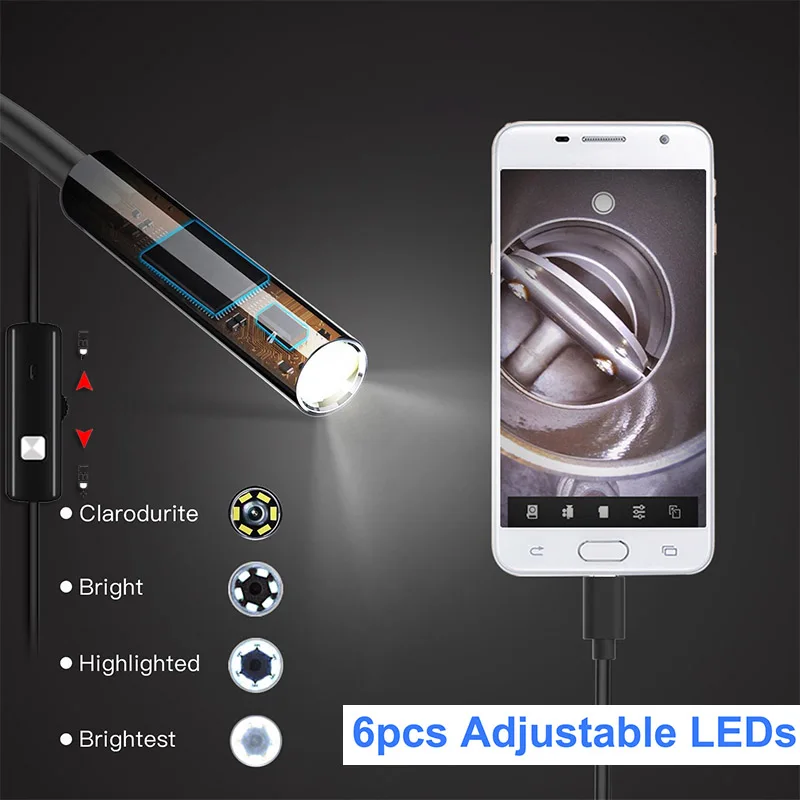 Камера-Эндоскоп, 7 мм, 5,5 мм, 6 светодиодов, IP67, гибкая, Micro USB промышленная камера-эндоскоп, для телефонов на Android, ПК, регулируемая