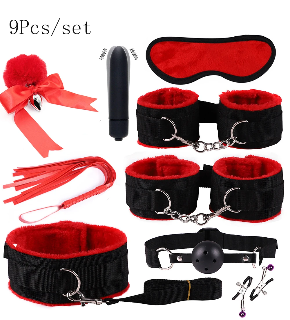 Набор для связывания БДСМ, из плюша, нейлона, наручники, зажимы для сосков игровой хлыст, секс-игрушки для пар, экзотические аксессуары