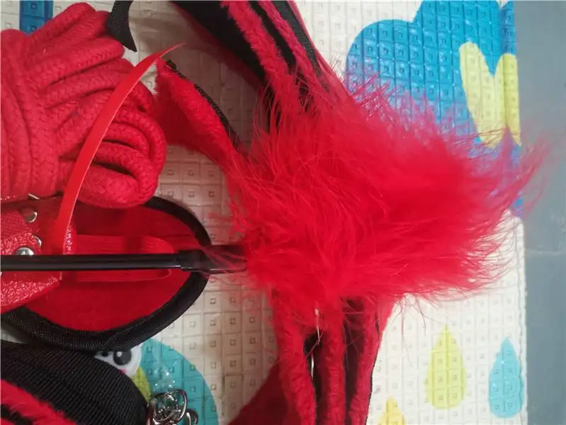 Собственно все как на картинке. Перья легко вылетают. Вибратор супер, он маленький, но работает оч. Хорошо. 1 маленькая батарейка. Кляп как по мне большеват(сам шар). В целом товаром довольна и тем что очень быстро пришло