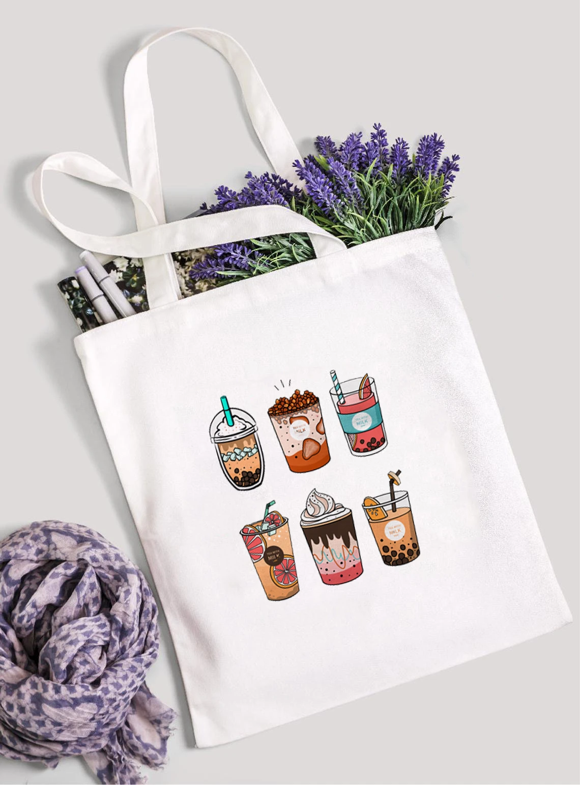 Сумка-шоппер Женская, кофейная, многоразовая, белая тканевая сумка