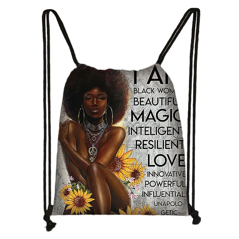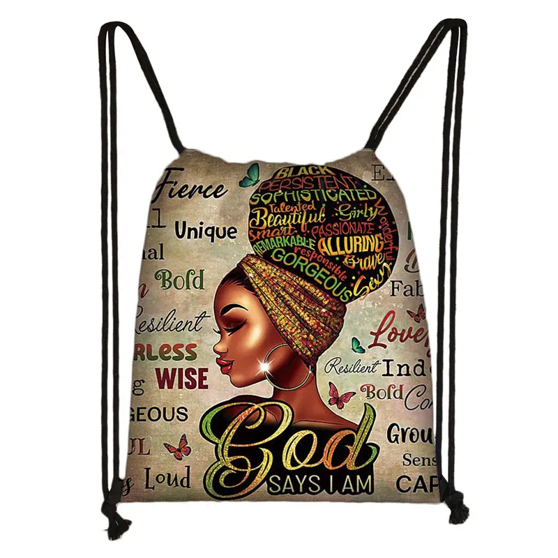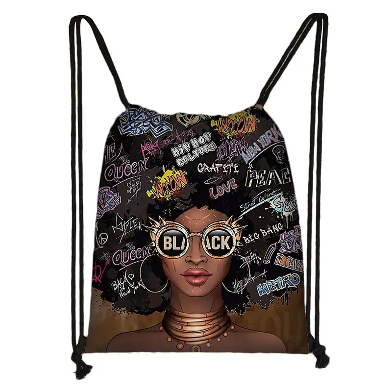 Сумка на шнурке с Африканской девушкой, модный рюкзак черного цвета...