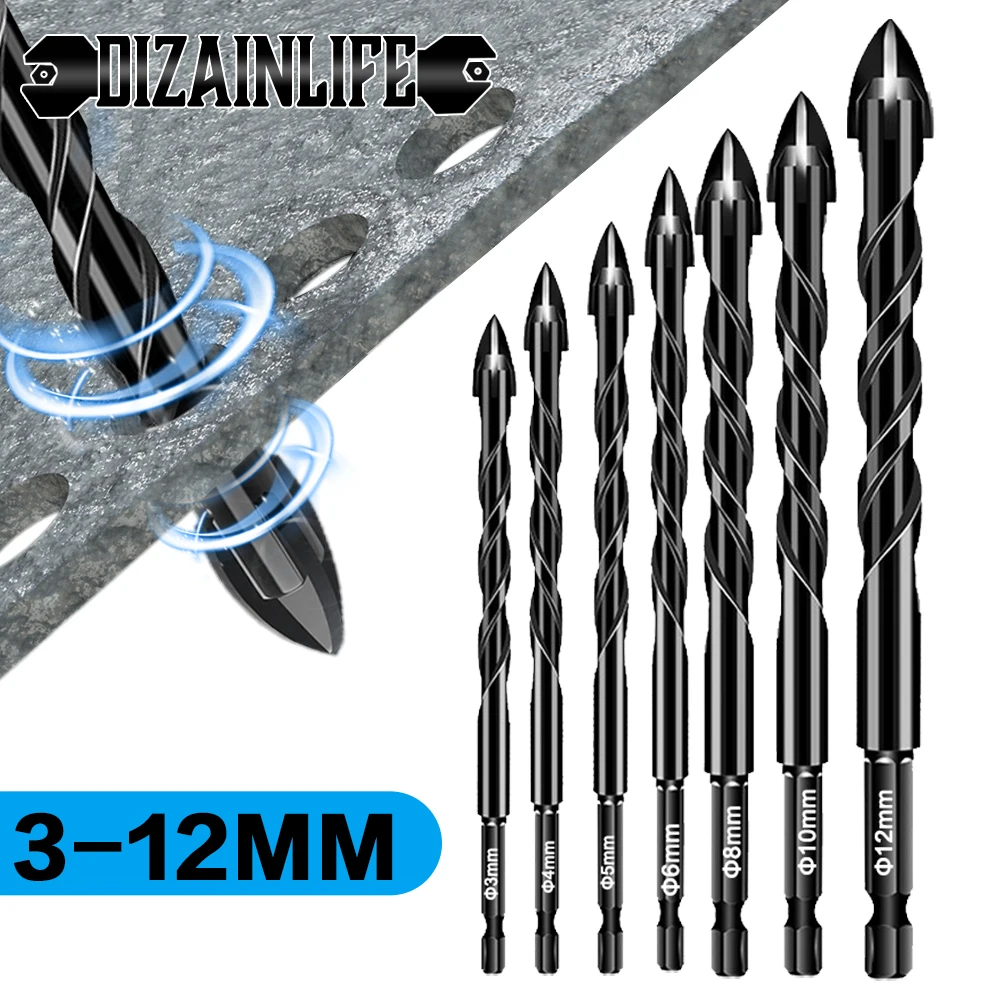 Набор сверл для плитки с коробкой, комплект из 3-12 мм крестообразных шестигранных насадок для открывания отверстий в стекле, керамике, бетоне, кирпичном корпусе, из твердого сплава, с треугольными насадками