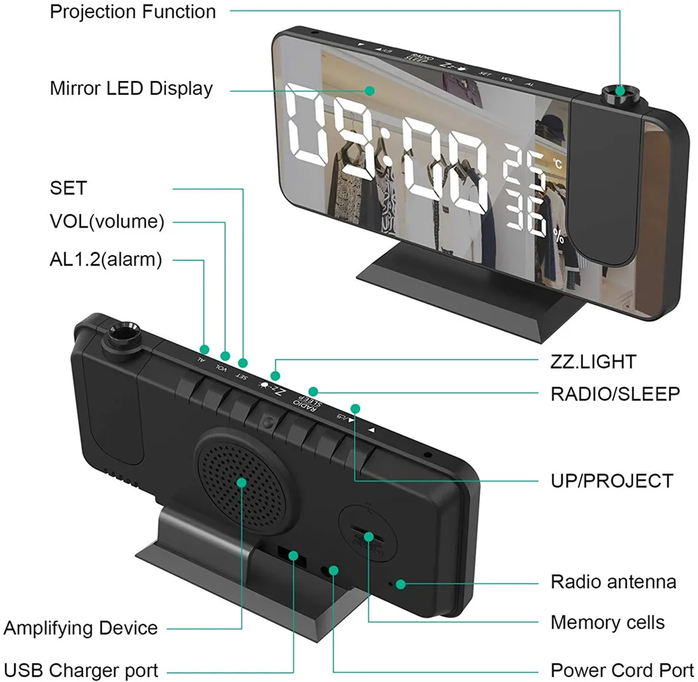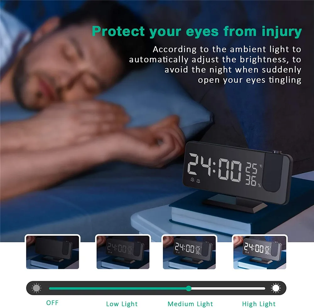 Светодиодный цифровой будильник USB Пробуждение FM-радио часы настольные электронные настольные часы проектор функция повтора 2 будильник