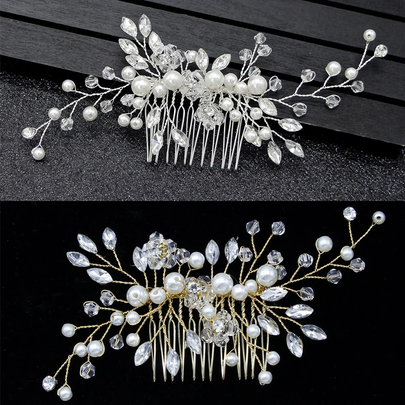 Свадебный цветок головной убор серебро Цвет, расшитые стразами и жемчугом Свадебные украшения для волос расчески для волос аксессуары для волос для женщин украшения для волос невесты ювелирные изделия
