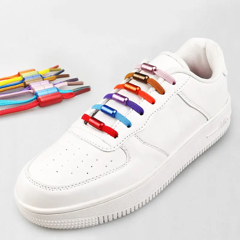 Плоские эластичные шнурки для кроссовок унисекс, металлические заст...